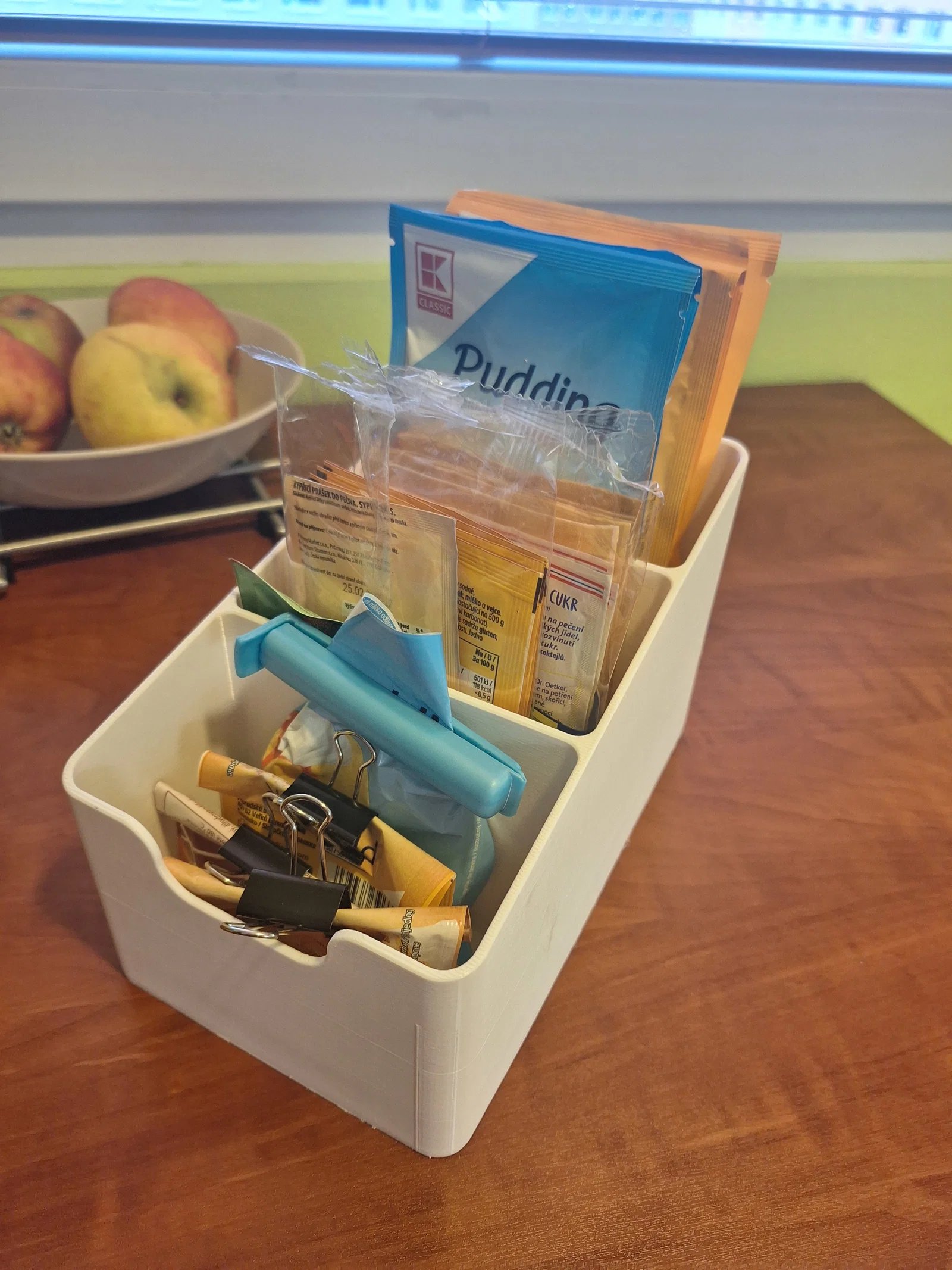 Bạn đang tìm cách để căn bếp của mình trở nên ngăn nắp và khoa học hơn? Mẫu khay đựng đồ nhà bếp đa năng này là một giải pháp hoàn hảo cho những người yêu thích sự gọn gàng. Với thiết kế nhiều ngăn thông minh, sản phẩm cho phép bạn phân loại các gói gia vị, túi bột làm bánh, kẹp giấy hay những vật dụng nhỏ linh tinh một cách dễ dàng. Nhờ cấu trúc phân tầng với miệng khay được thiết kế lượn sóng, bạn có thể lấy đồ đạc bên trong một cách nhanh chóng mà không gặp bất kỳ khó khăn nào. Đây là dự án in 3D cực kỳ hữu ích và dễ thực hiện, giúp tối ưu hóa không gian lưu trữ hiệu quả cho ngôi nhà của bạn.