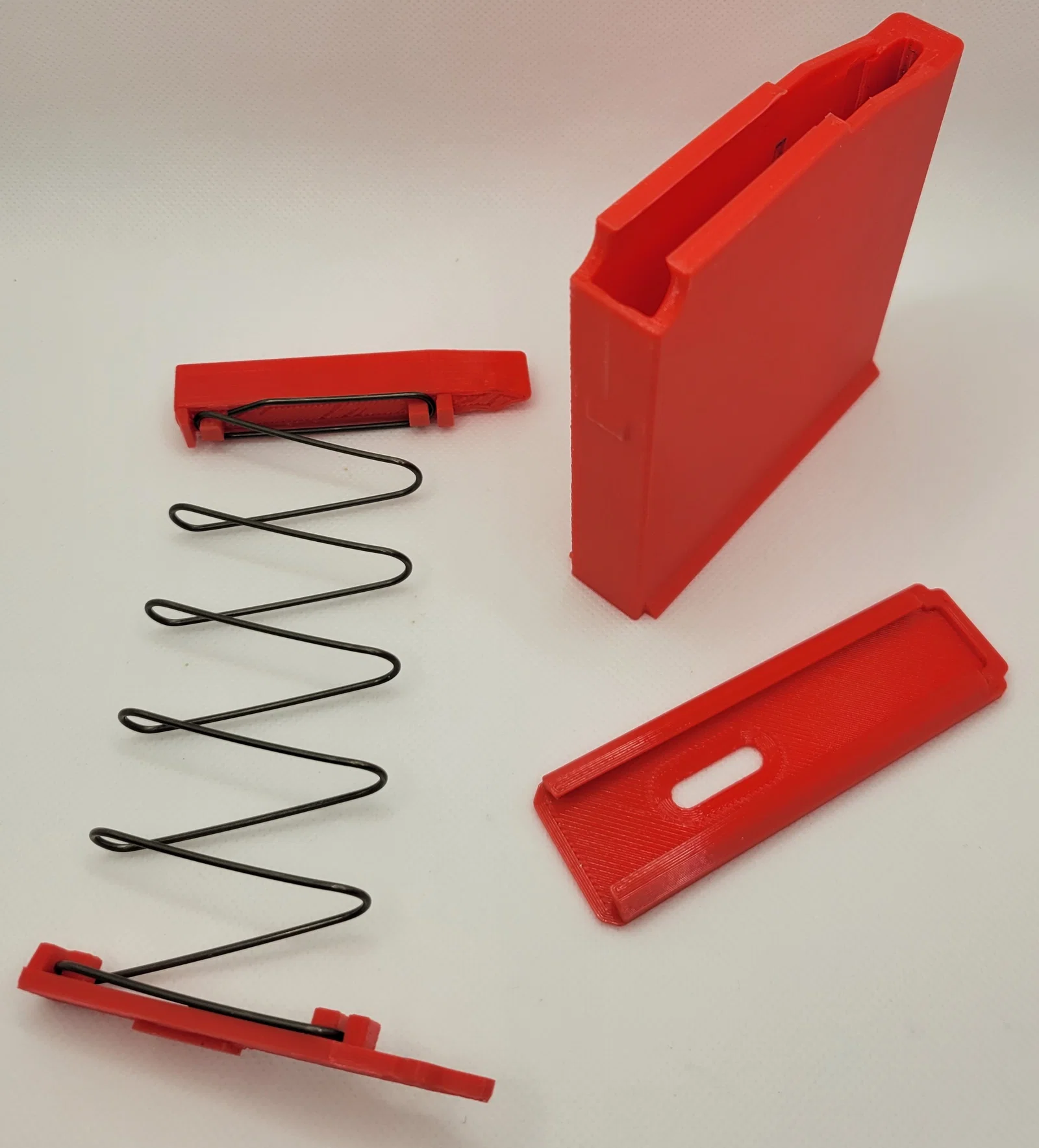 Băng đạn AICS Long Action Magazine cho đạn nền 30-06, dùng với chassis hệ AICS long action. Hướng dẫn in: PLA+, nozzle 0.4mm, layer 0.16mm, 4 walls, 50% gyroid; cần lò xo AK-74 và supports cho follower/locking tab.