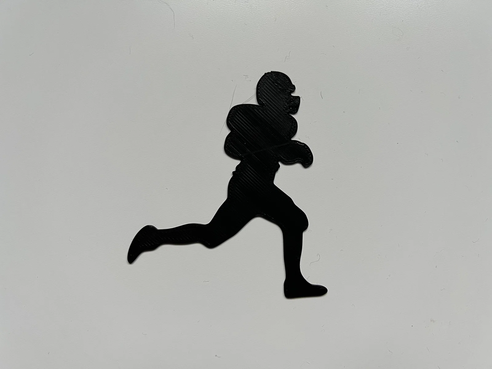 Nếu anh em là tín đồ của bộ môn bóng bầu dục Mỹ (NFL) và muốn tìm một món đồ decor độc đáo cho góc làm việc hoặc phòng giải trí, thì mẫu trang trí tường hình cầu thủ này chắc chắn là lựa chọn không thể bỏ qua. Được thiết kế dựa trên hình ảnh một vận động viên đang bứt tốc ghi bàn (touchdown), mô hình này mang lại cảm giác năng động, mạnh mẽ và đầy nhiệt huyết cho bất kỳ không gian nào. Với kiểu dáng dạng silhouette (bóng đen) tinh giản, sản phẩm này rất dễ phối hợp với các phong cách nội thất hiện đại.