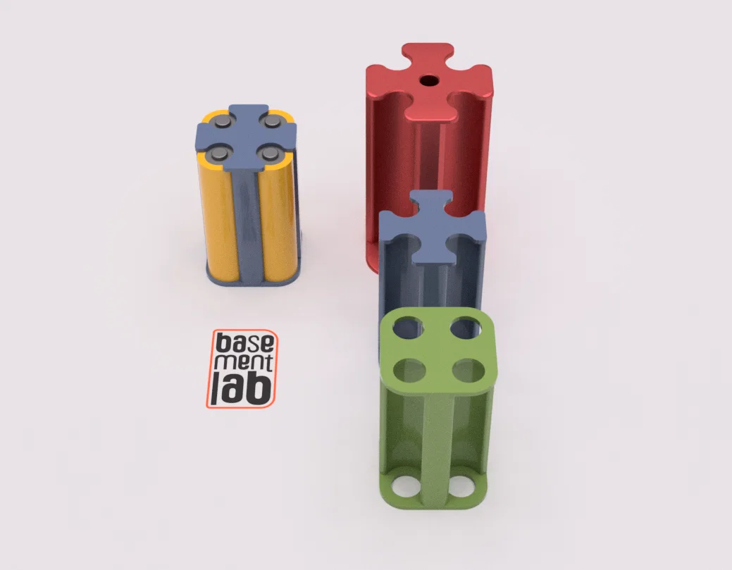 Mẫu giá đỡ Battery Pack cho 4 pin AA hoặc 4 cell 18650. Có thể resize để chỉnh kích thước theo nhu cầu. File cập nhật gồm Battery Pack Holder AA Rev.A.stl (29/03/24) và 18650 Rev.A.stl (09/06/24).
