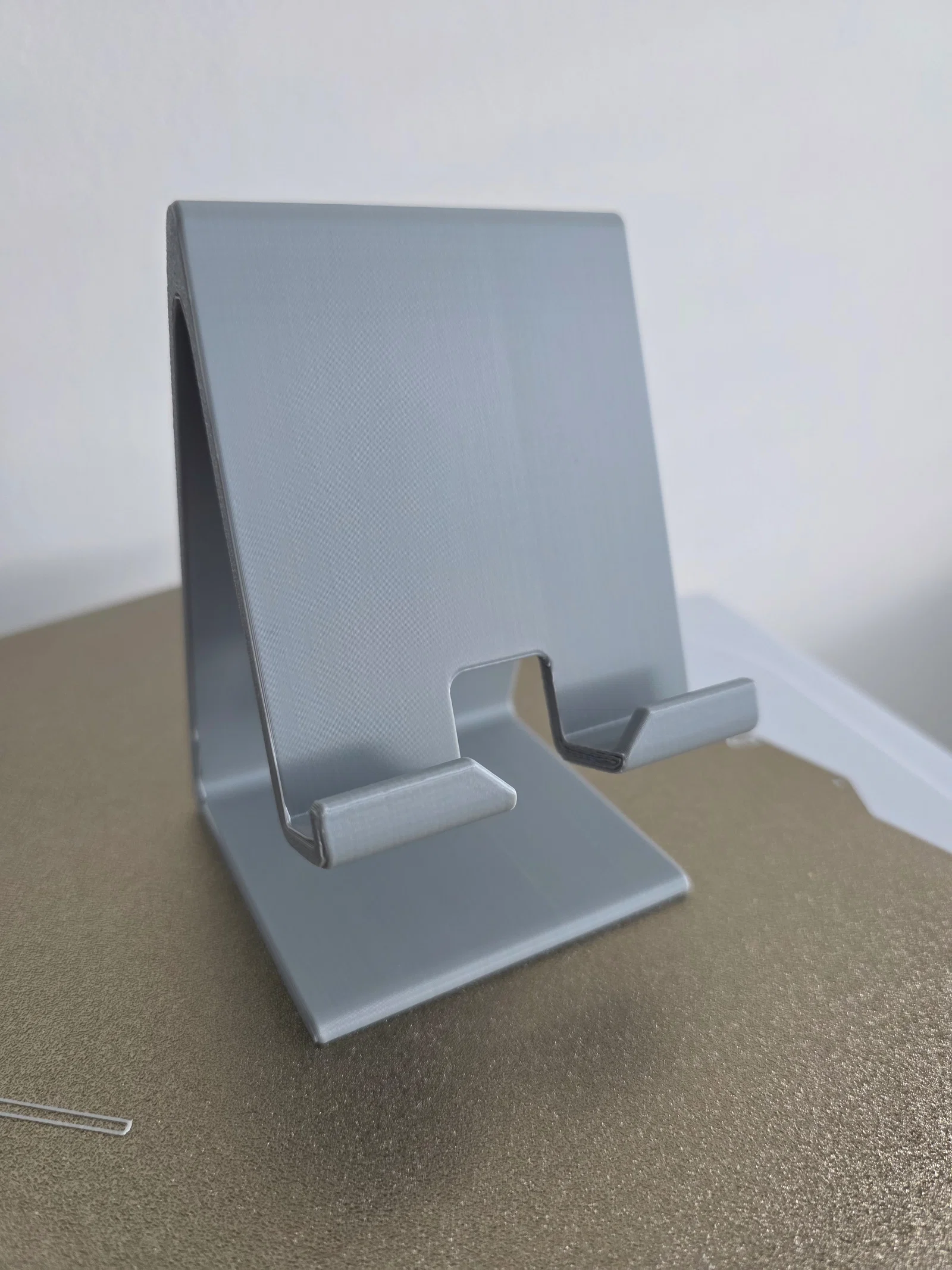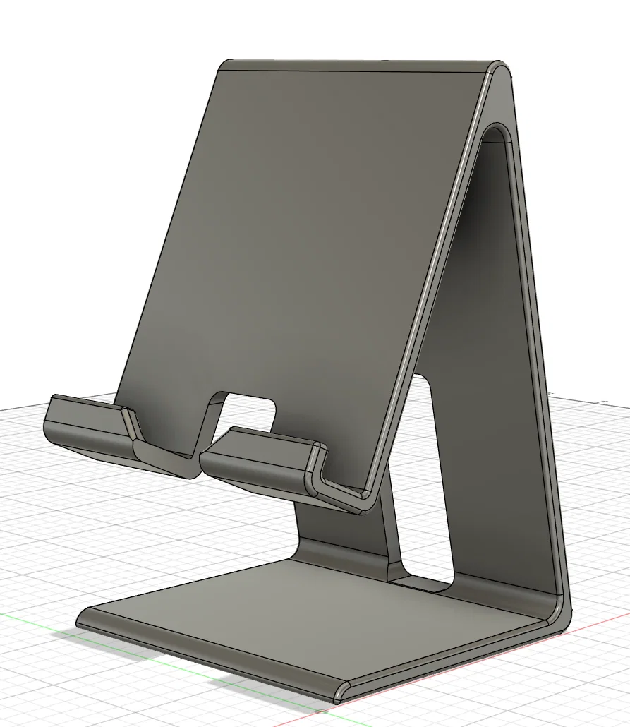 Kệ đỡ điện thoại và tablet V2, rộng 80mm, dùng cho thiết bị dày tới 13mm (kể cả hardcase). Góc nghiêng 24° dễ nhìn, có đường dẫn dây sạc/data phía sau. In PLA, infill 100%, nozzle 0,4mm.