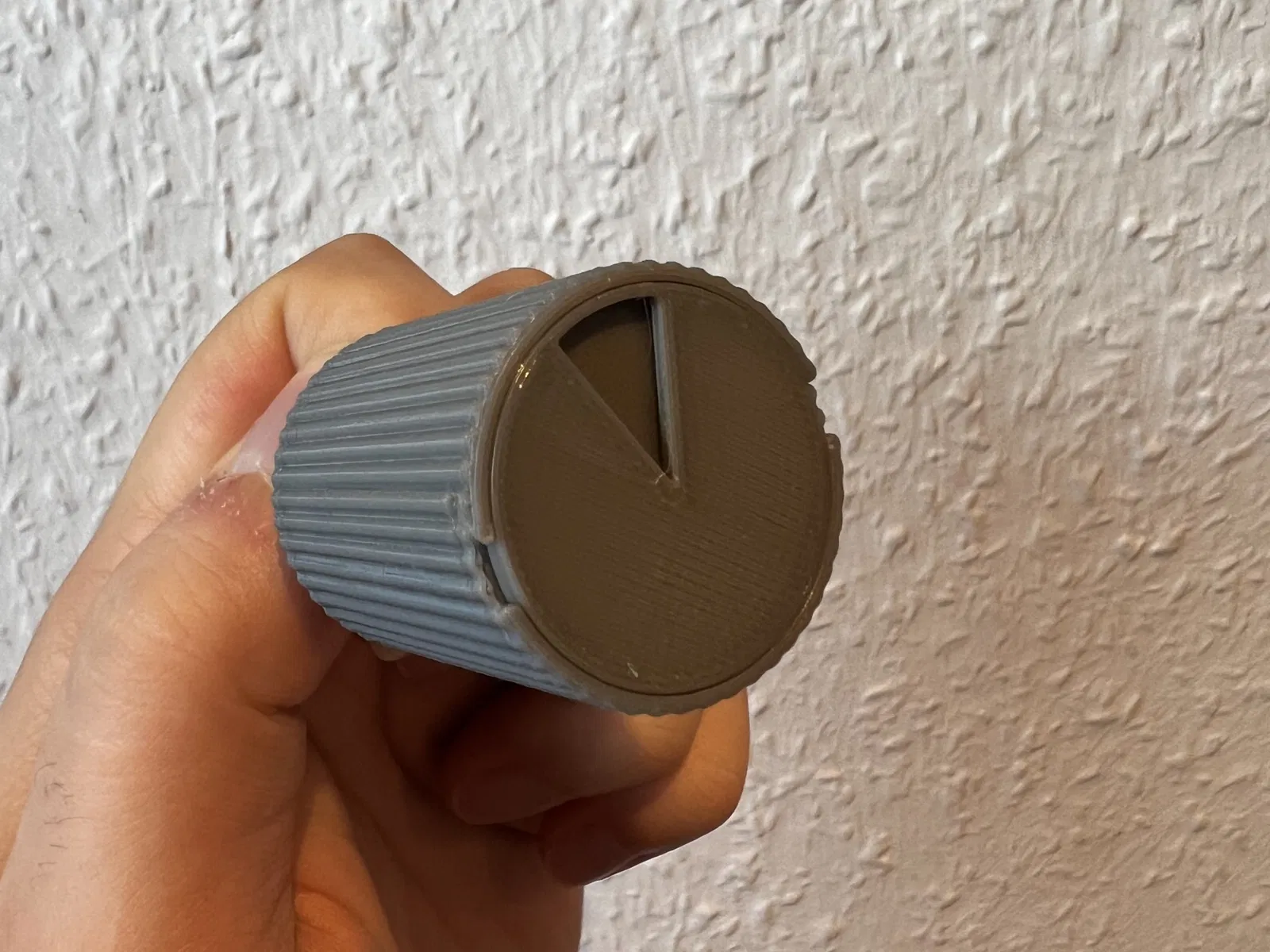 Tôi muốn tạo ra một núm khóa với một chút khác biệt, vì vậy tôi đã làm một cái, theo nghĩa đen. Bằng cách xoay chống lại một lực cản, nó thay đổi trạng thái của nó.