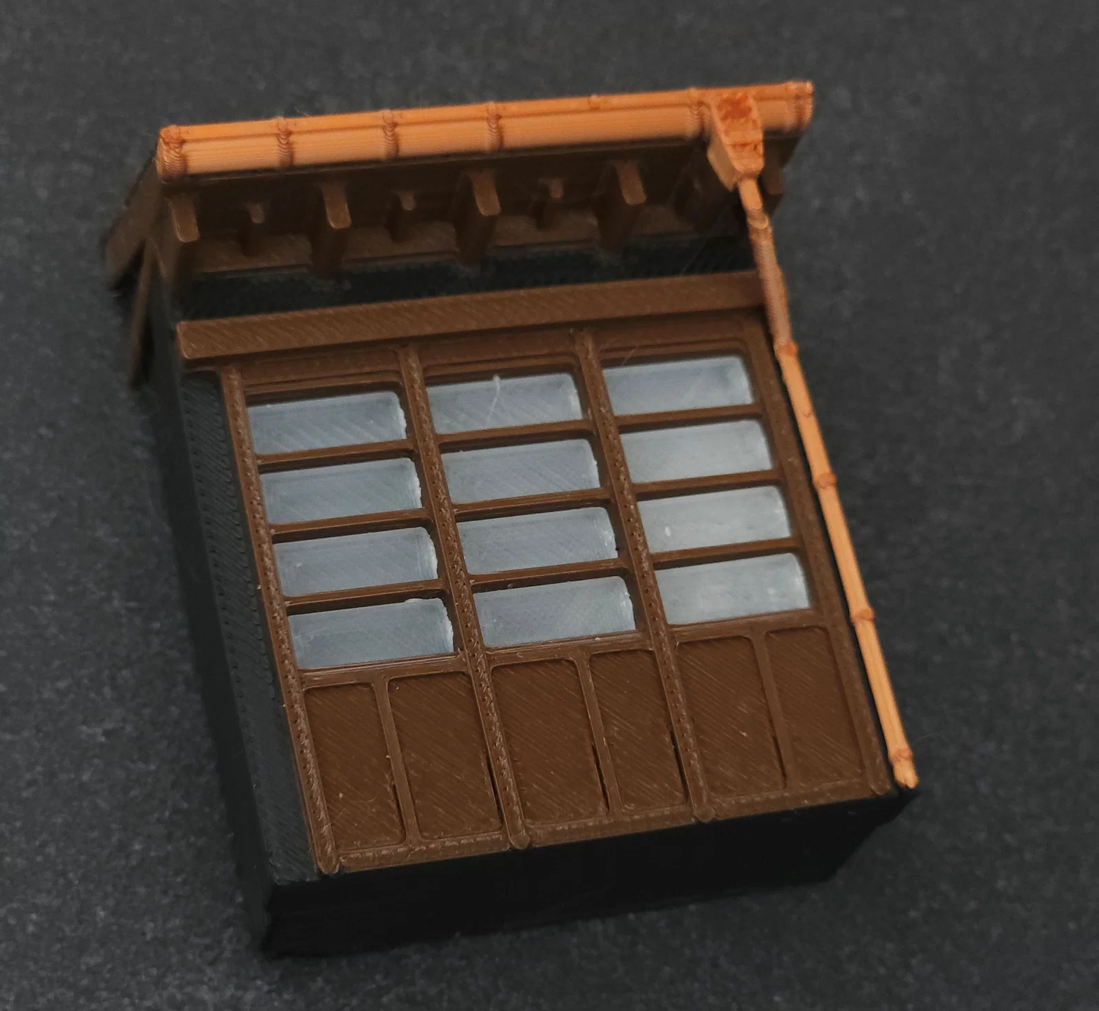• Tách rời chi tiết: Tận dụng file thiết kế được chia sẵn để in các phần như khung, tấm kính và mái nhà riêng biệt, từ đó tạo ra sự tương phản màu sắc thú vị.