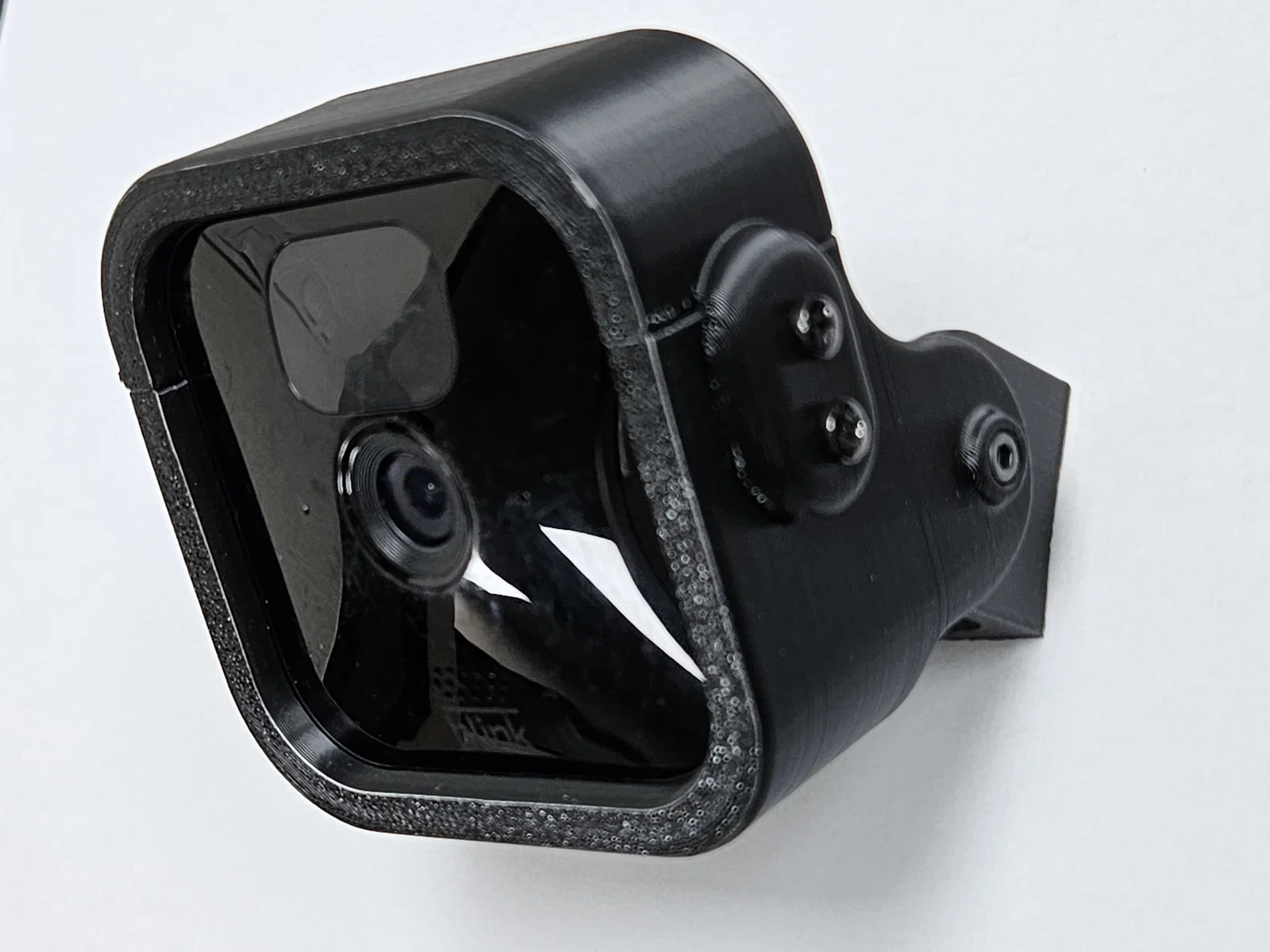 Mẫu ngàm treo tường cho camera Blink có thể chỉnh góc linh hoạt. Khi lắp đặt, cần chuẩn bị ốc Socket cap M3-0.5x10mm (2 cái), ê-cu Nylon lock nut M3-0.5 (2 cái) và vít M3-8T (4 cái).