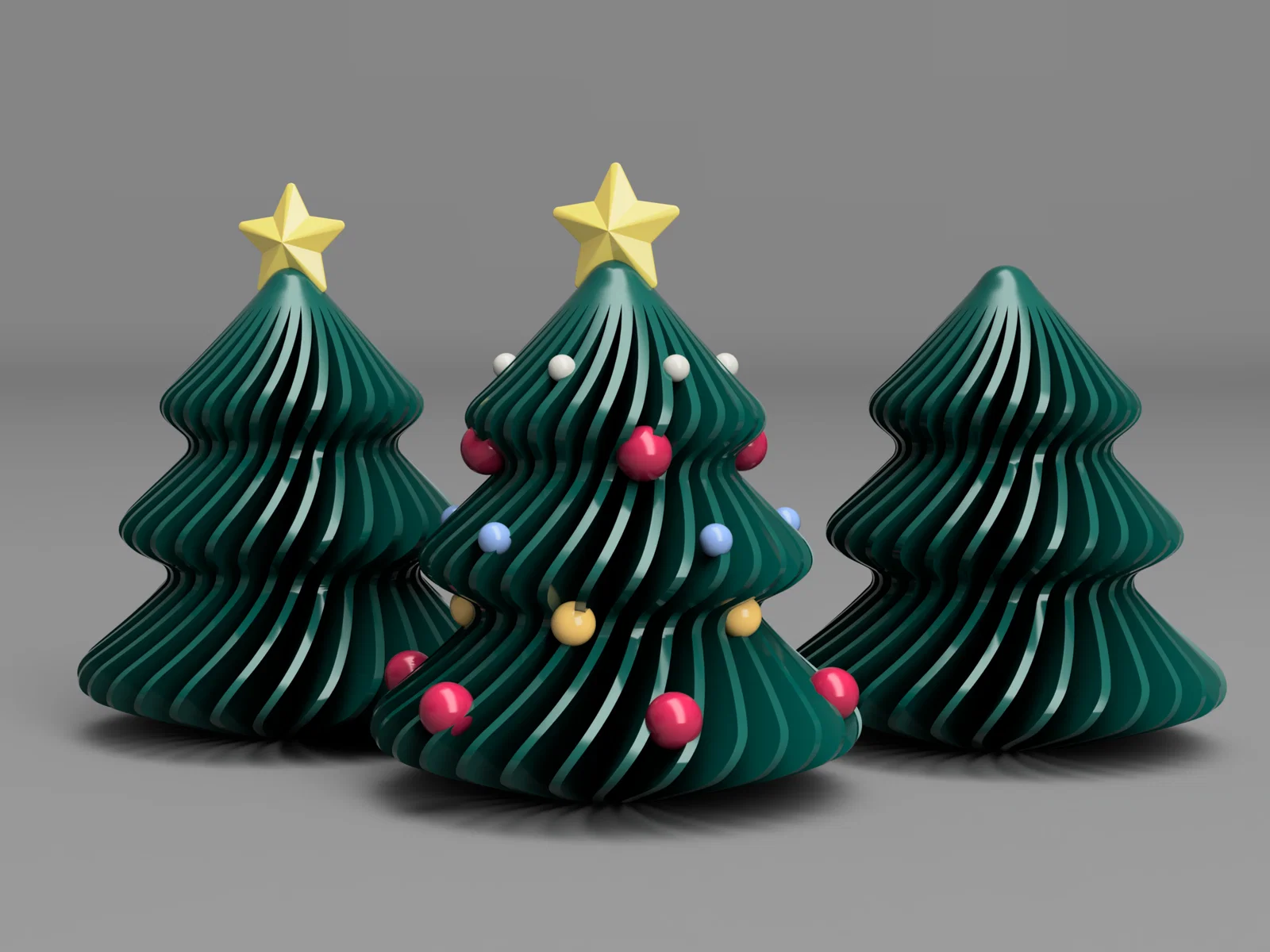Mẫu trang trí Christmas Tree gồm 4 biến thể có ornaments (18/22/26/30 ribs) và tùy chọn không ornaments. File nhiều objects dễ chỉnh/xóa trong Sclicer. Khuyên in kèm supports; kích thước 118×93 mm.