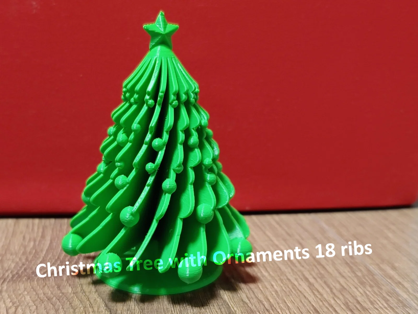 Mẫu cây thông Noel trang trí kèm đế, có 4 biến thể (18/22/26/30 ribs) và tùy chọn không ornaments. File dạng nhiều object dễ chỉnh trong Sclicer; khuyến nghị in với supports. Kích thước 113×89 mm.
