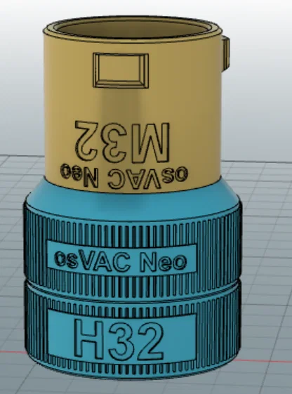 Bản osVAC neo M32H32 được tích hợp slip ring, kèm file STEP và dự án Fusion 360. Link tải bản file mới nhất và một ít documentation được chia sẻ trên woodworker.de, kèm nơi tổng hợp hỗ trợ osVAC/osVAC neo.