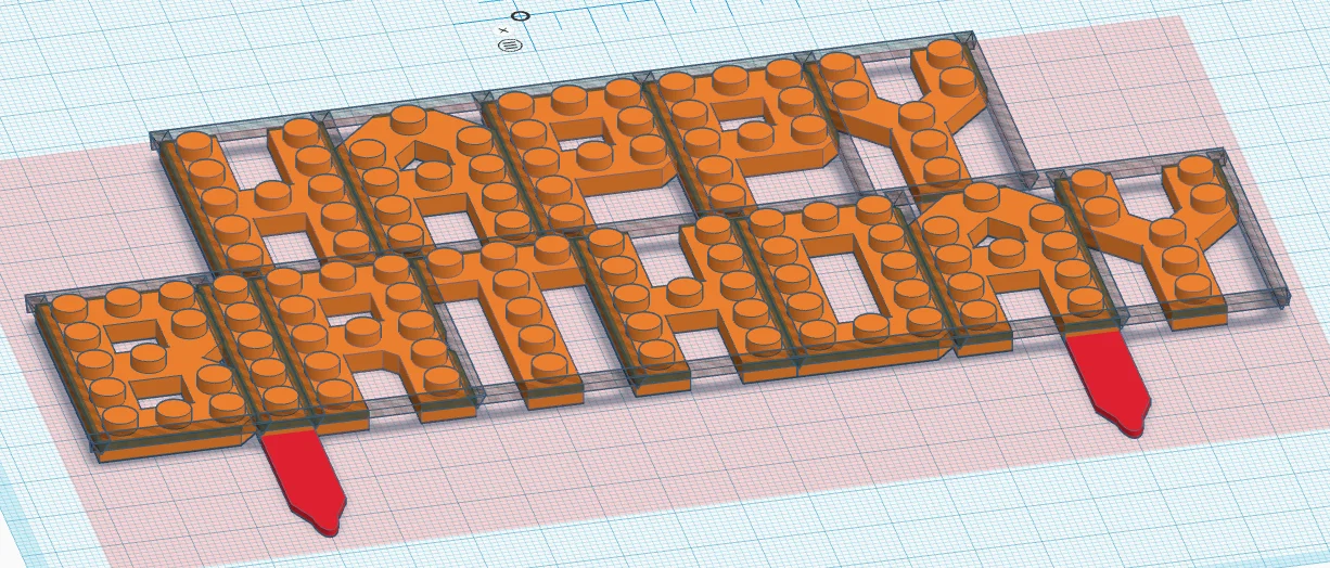 Cake topper (hoặc cupcake topper) chữ “Happy Birthday” thiết kế như Lego brick plates, kích thước chuẩn để có thể build Lego lên studs. Rộng 170mm, hợp bánh 8", có gai cắm bánh và gợi ý nozzle 0.2–0.25mm.