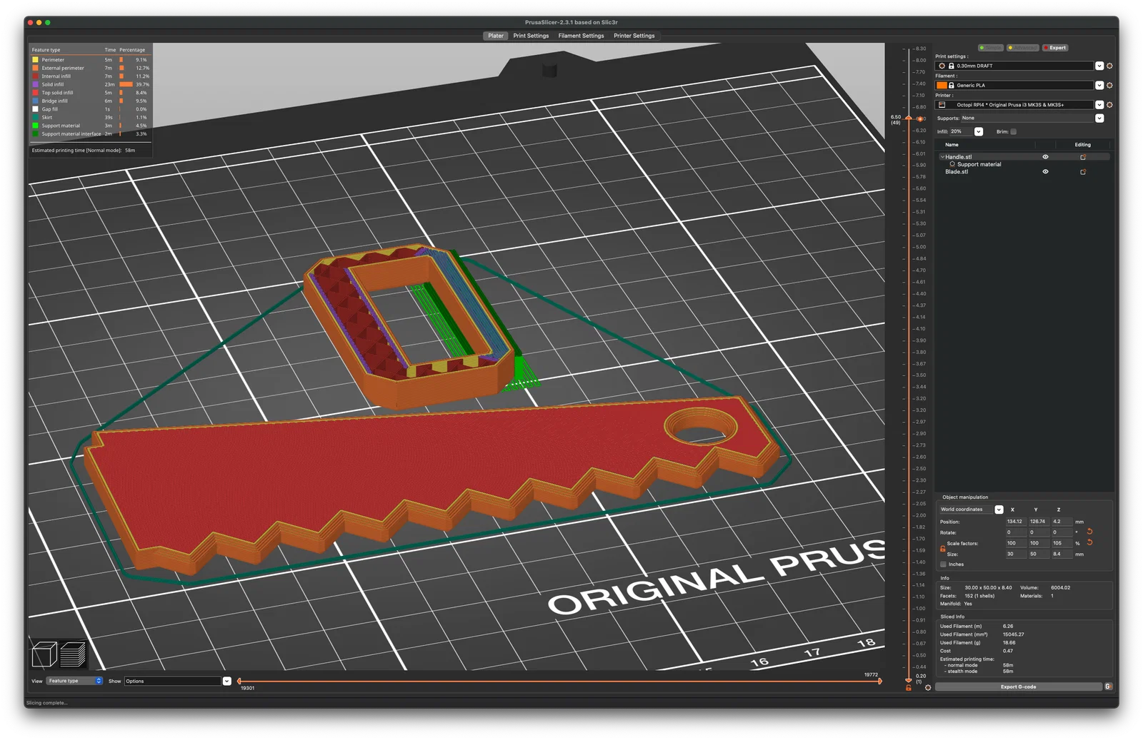 Cái pocket trong tay cầm (sau khi slice theo thiết lập ở trên) dày 13 layer (tất cả layer đều 0.3mm), tổng cộng 3.9mm nên không đủ rộng cho lưỡi cưa.