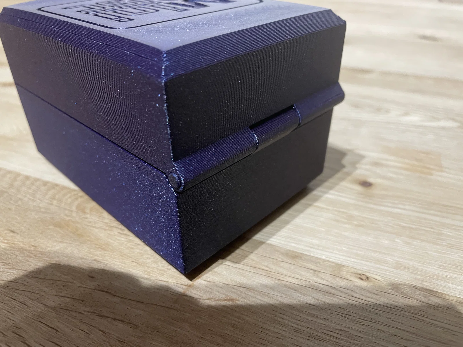 In 1x phần base, 1x phần lid, và 1x các mảnh hinge. Base và lid đều vừa khít trên khay in của máy cỡ i3 theo file 3mf đính kèm. Đặt các mặt phẳng của tất cả chi tiết xuống build plate. Các mép vát (chamfer) quanh viền và phần tay cầm đều là 45 độ nên sẽ không cần supports ở các chỗ này. Tuy nhiên logo trên nắp (lid) và phần hinges sẽ cần supports.