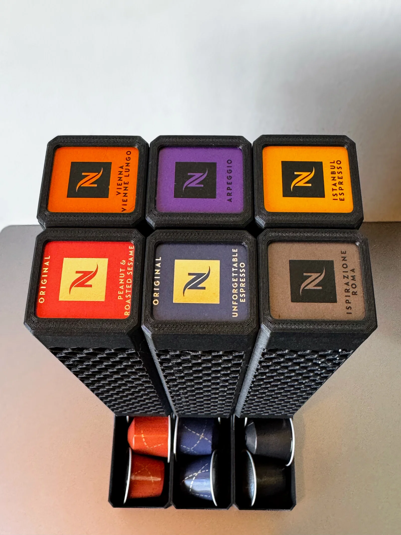 Dispenser capsule Nespresso dạng modular, không cần giữ hộp gốc mà vẫn chứa tối đa 10 viên và hiển thị dung lượng hiện tại. Có nắp để tận dụng nhãn hộp, giúp bạn ghi rõ loại capsule ở trên tháp.