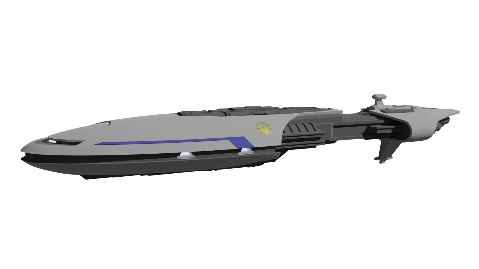 Đây là mô hình tàu New Republic Defender-class Cruiser xuất hiện trong series Star Wars: Ahsoka. Có một chiếc thuộc loại này tên là Vesper.