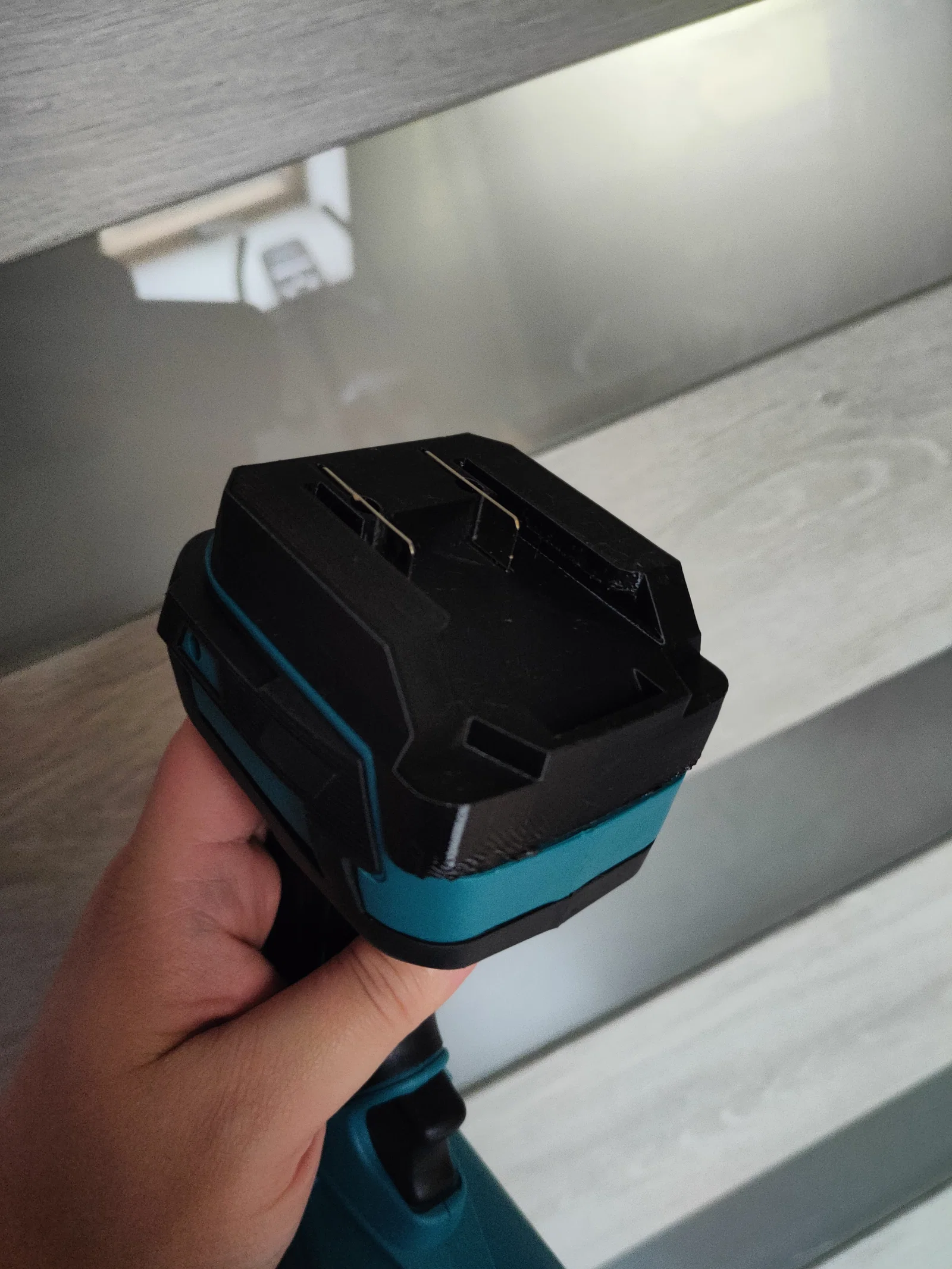 Mẫu custom giúp đổi ngàm pin Makita trên Gisam Jet Blower sang dùng pin Parkside. Cần hàn cơ bản để tận dụng dây máy và bản tiếp xúc pin. Khuyến nghị in nghiêng khoảng -30° để gần như không cần support.