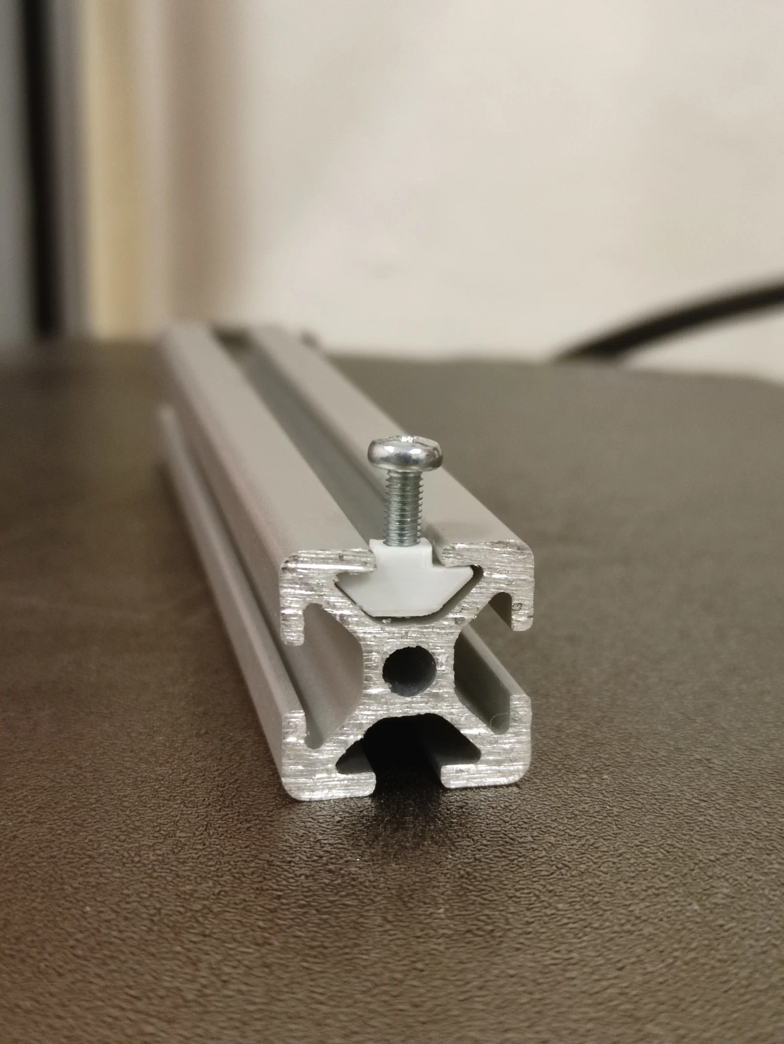- Lưu ý lắp đặt: Trước khi bắt đầu siết ốc, hãy chắc chắn T-Nut đã xoay đúng hướng nằm ngang trong rãnh nhôm để nó tự khóa lại khi siết, tránh trường hợp bị xoay tròn theo ốc.