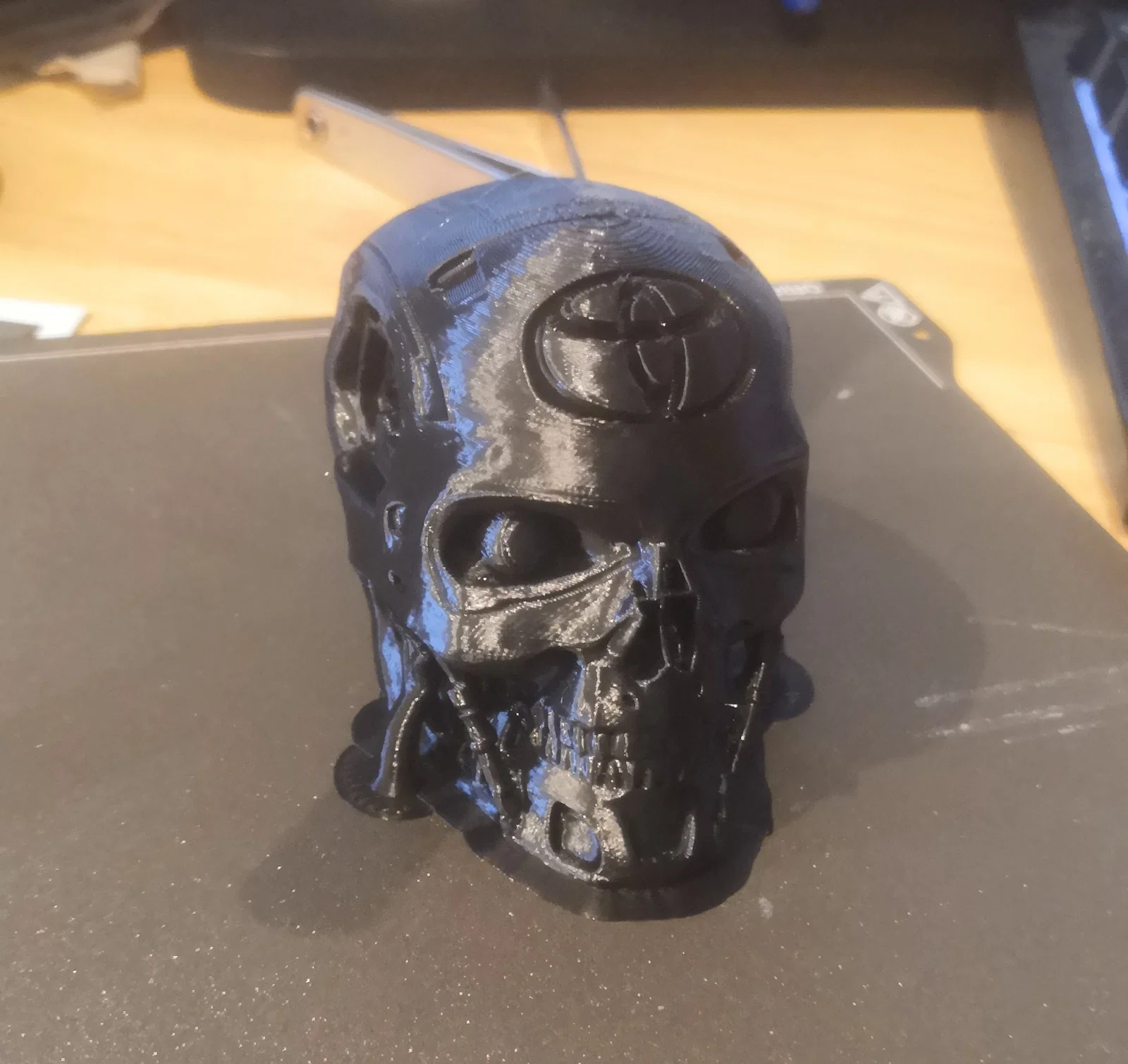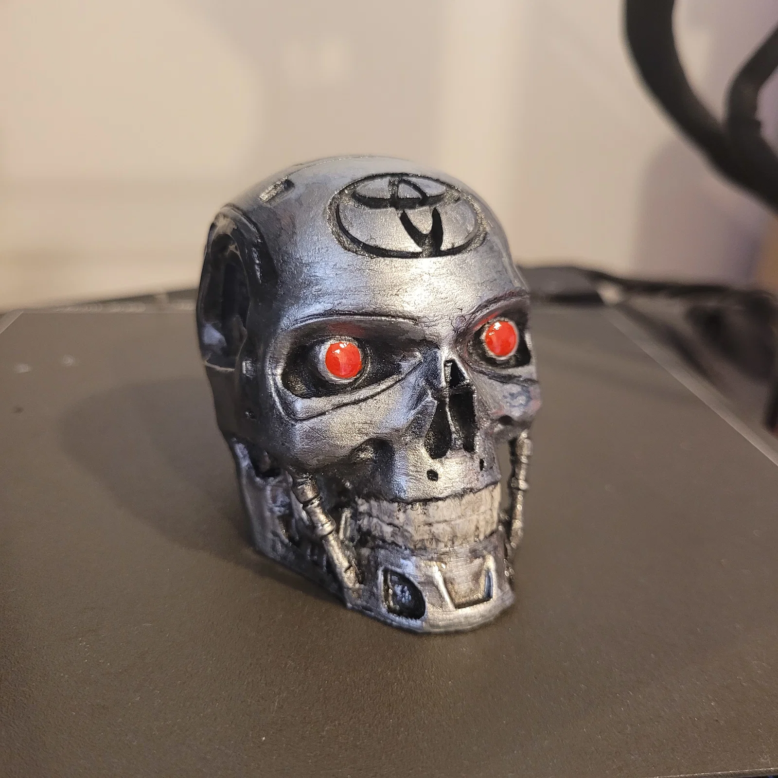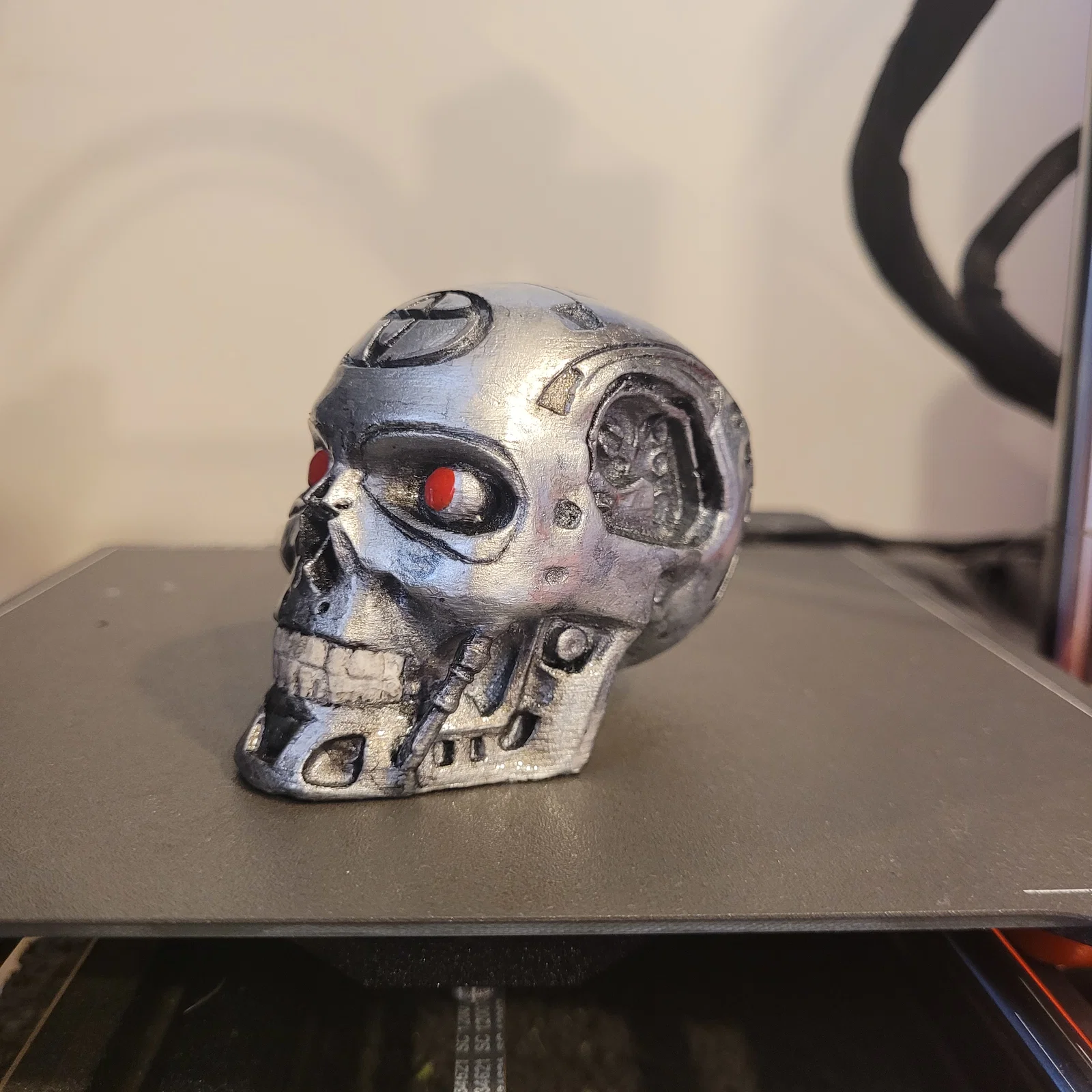 - Hoàn thiện: Sau khi in, bạn có thể sơn màu bạc kim loại và dùng sơn đỏ cho hốc mắt để làm nổi bật chi tiết cơ khí giống như hình minh họa.