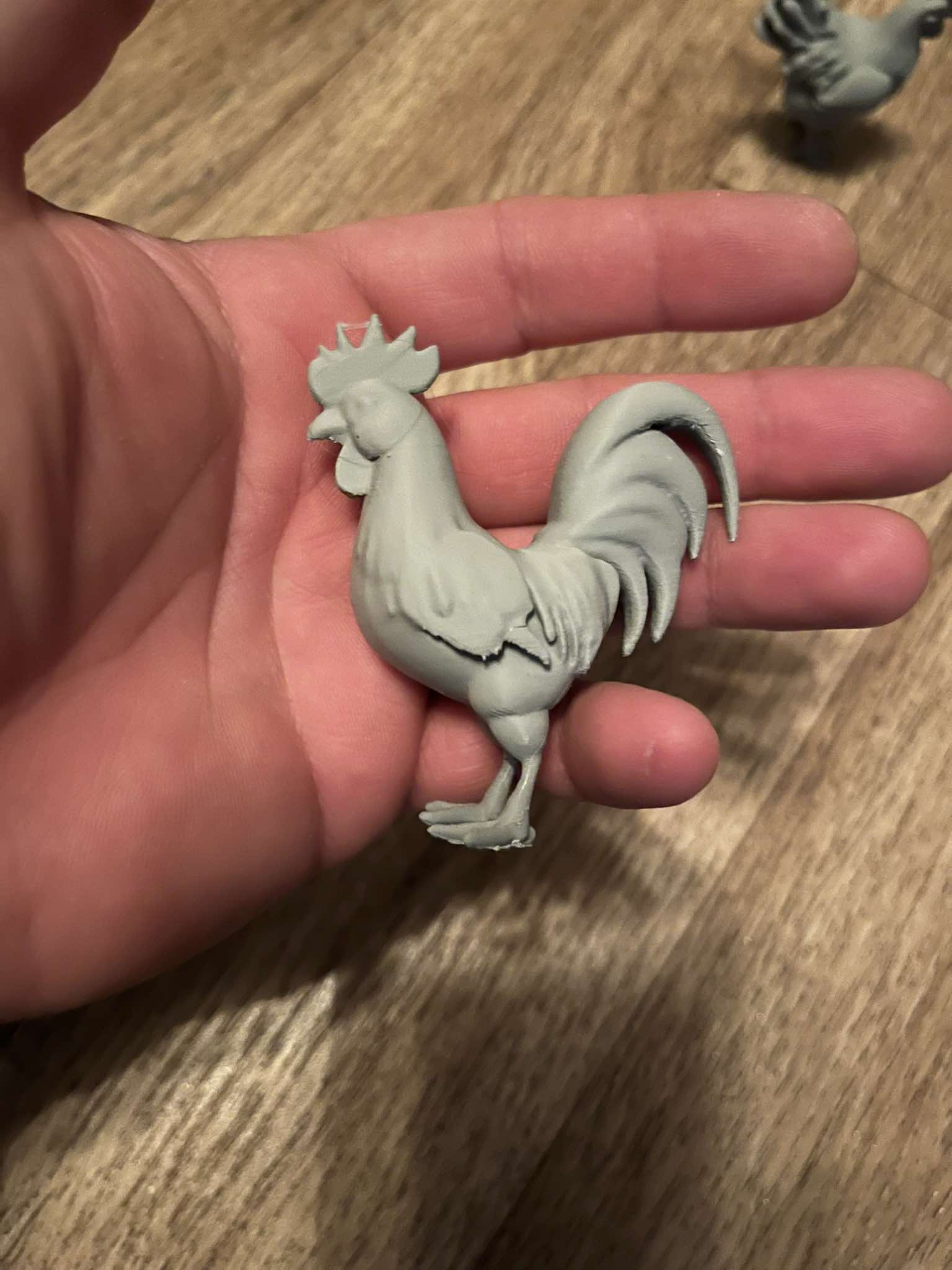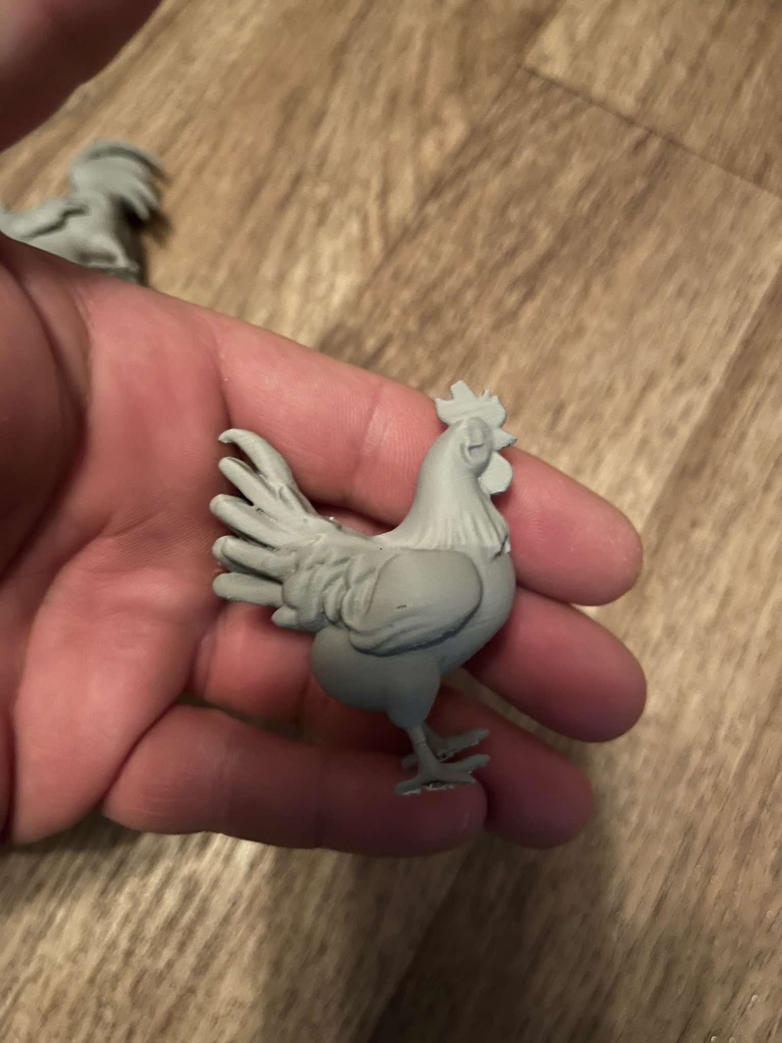 Mình có cho bạn 4 bé gà mái và 1 bé gà trống. Mẫu con vật này làm rất đẹp. Rất hợp để sơn màu. Mấy đứa nhỏ nhà mình mê lắm luôn :-).