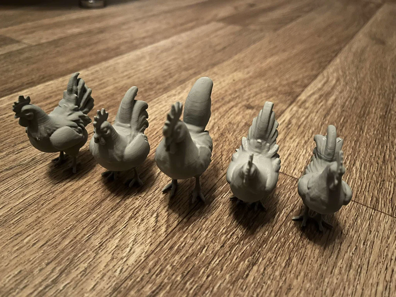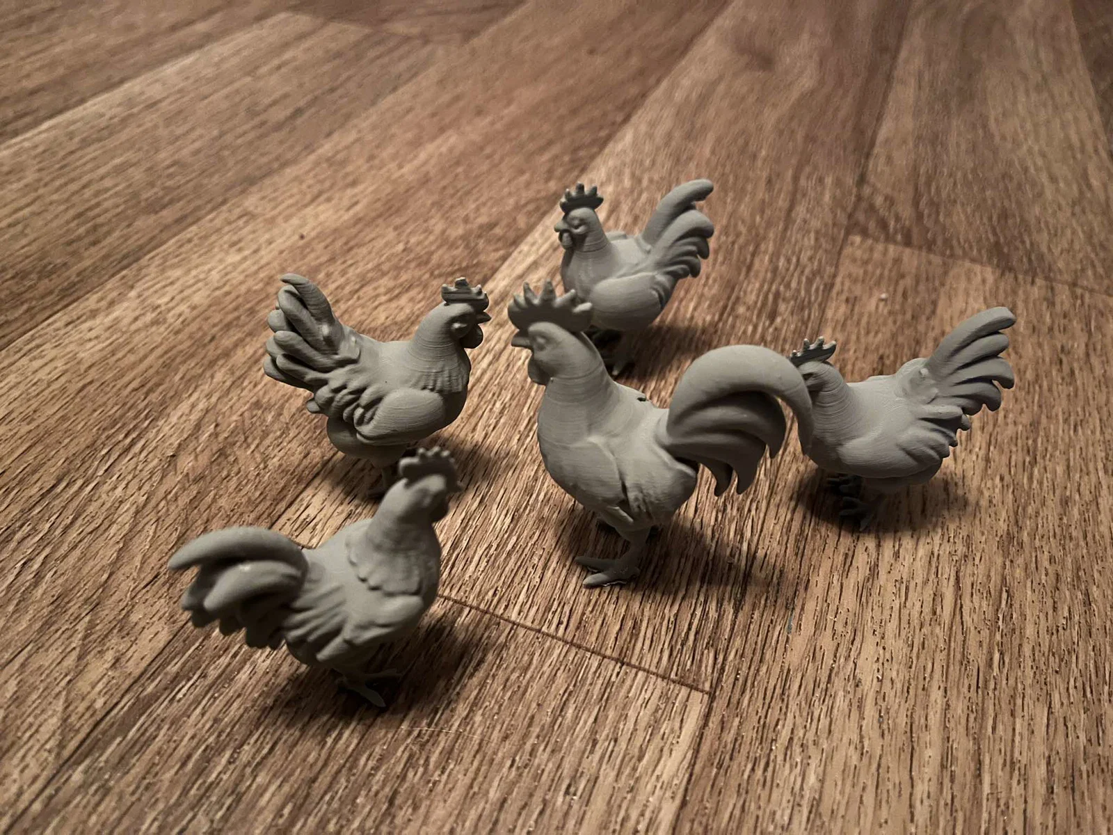 Bộ model “Slepičky a kohout” gồm 4 bé gà mái và 1 bé gà trống, tạo hình dễ thương, làm rất đẹp và cực kỳ hợp để sơn/paint. Phù hợp cho miniatures, trang trí chủ đề farm, animal, bird.