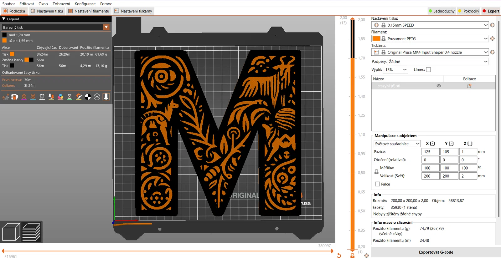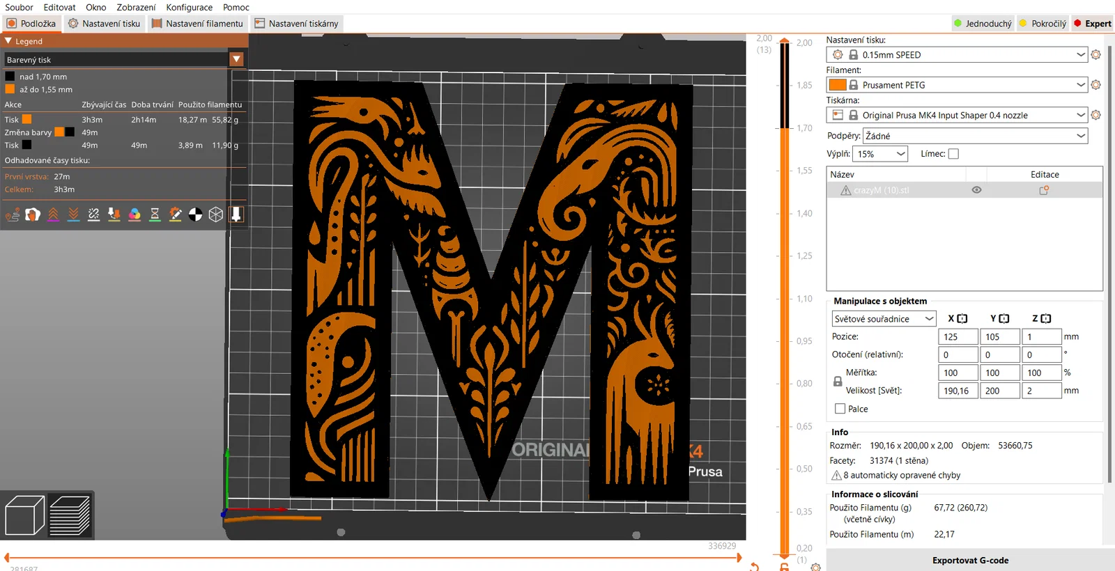 • Cài đặt máy in: Hãy sử dụng layer height ở mức 0.12mm hoặc 0.16mm để các đường nét điêu khắc trên chữ M trở nên mịn màng và rõ ràng hơn.