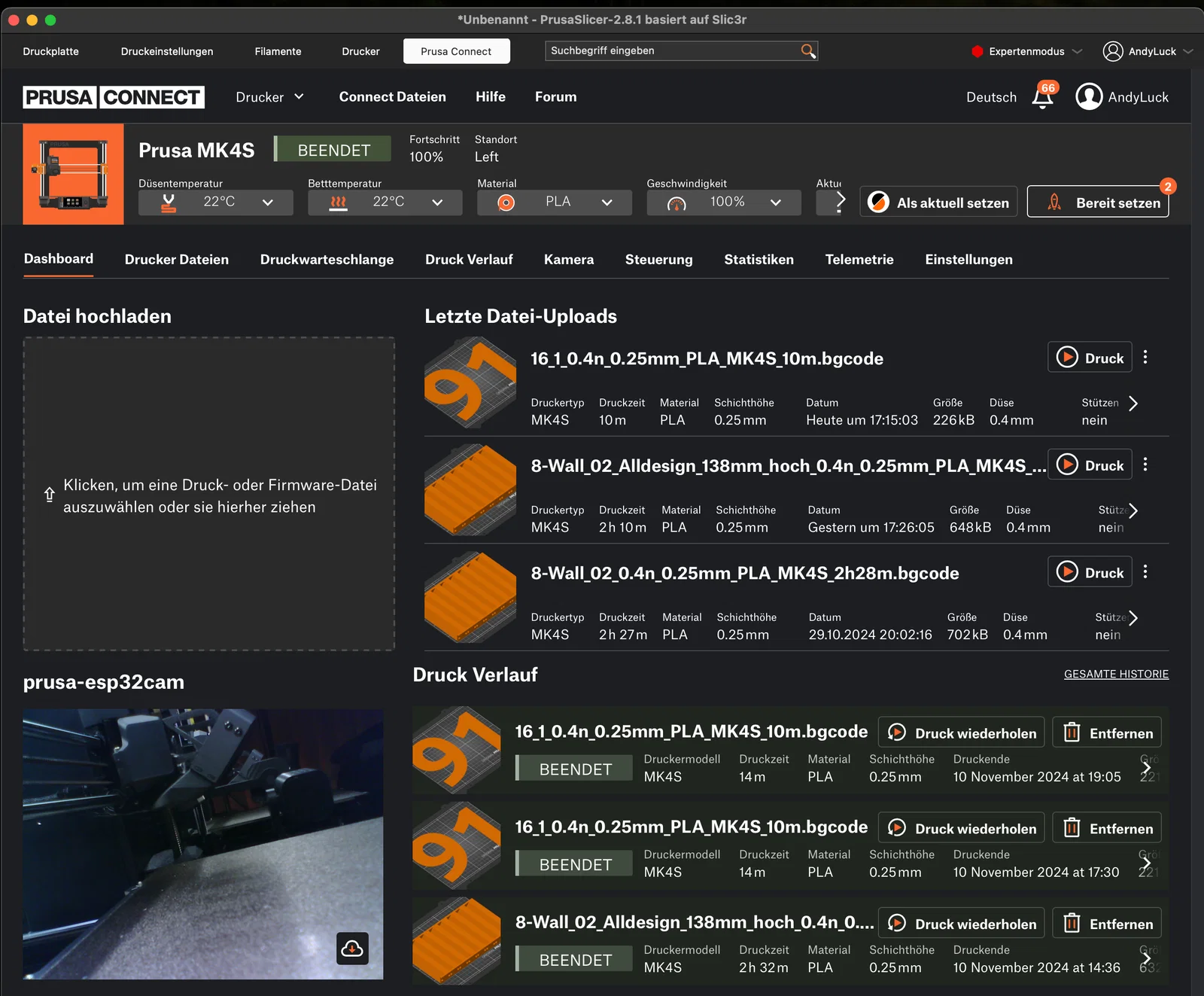 Webcam ESP32-CAM giá rẻ, gọn đẹp để dùng với Prusa MK4S và Prusa Connect. Hướng dẫn lắp ráp, flash firmware qua web tool, cấu hình WiFi, rồi gắn lên trục Z bằng ốc M3 và in vỏ kèm file .3mf.