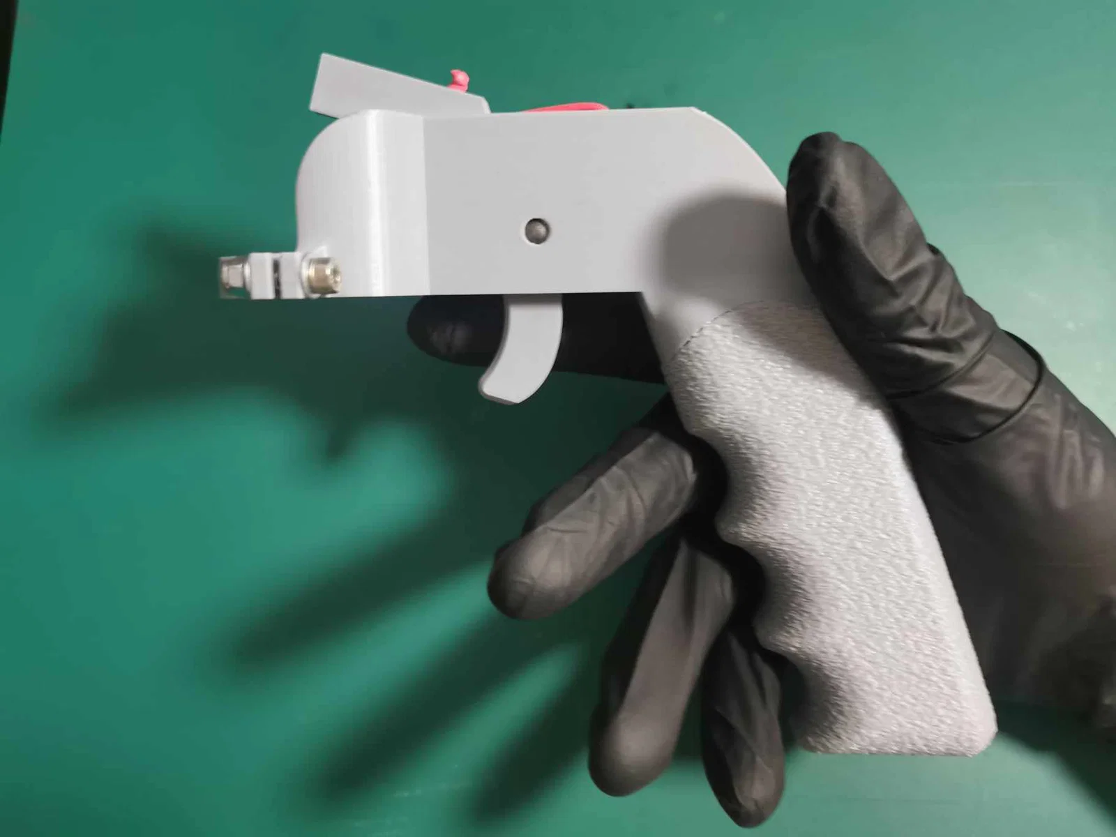Mình cũng thêm một cò ngắn cho 1 ngón tay và sau đó gắn thêm dây thun (chỉ cần khoan 2 lỗ trên mỗi phần và dùng dây thun tiêu chuẩn) để giữ cò ở trạng thái mở.
