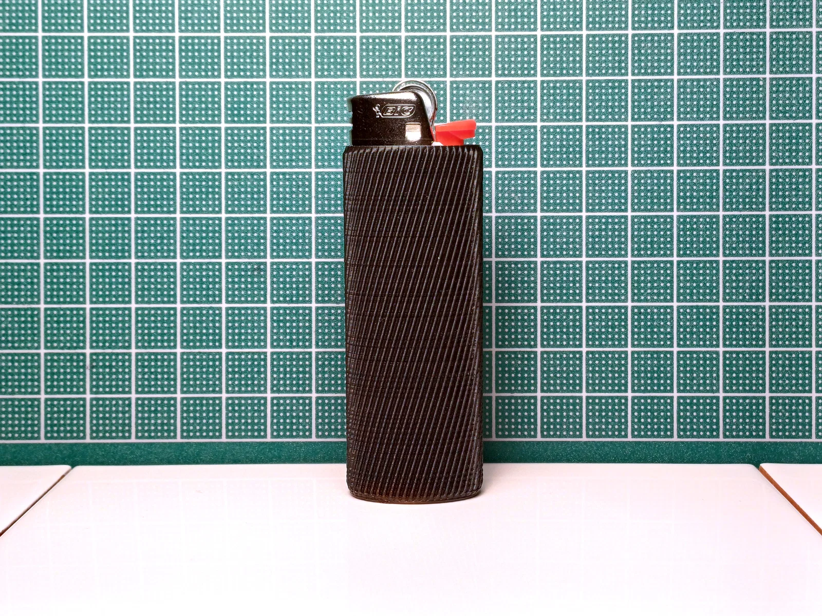 Vỏ trang trí cho bật lửa BIC loại thường, in 3D bằng vase mode với họa tiết hình học lặp lại nhìn hiện đại. Nhẹ, in nhanh; có thể cần chỉnh scale ±0.5%–1% tùy bật lửa có bọc màng nhựa hay không.