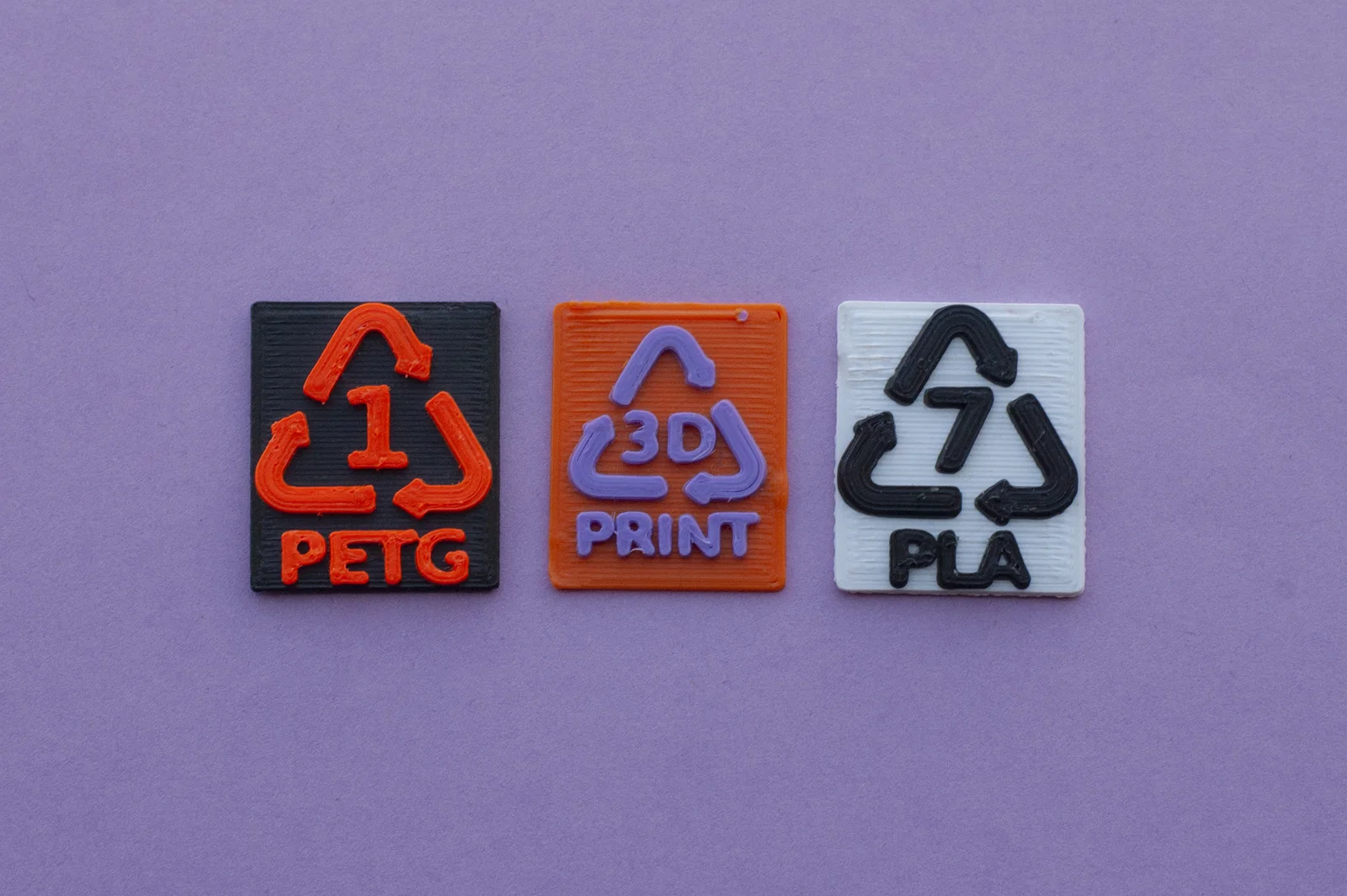 Đầu tiên, có sẵn một bộ STL dùng font DejaVu Sans bold và 2 kiểu: “plain style” ở kích thước mặc định (giống PrusaSlicer, xem hình ví dụ), và một bản có offset 0.2mm hoặc positive clearance (ngay dưới đây bạn sẽ thấy vì sao). OpenSCAD customizer có rất nhiều tham số nhìn là hiểu, giúp bạn tùy biến output dễ dàng. Bạn có thể thêm offset, đổi font, dùng “stack” symbol (in ổn với overhang dạng bậc, cho phép đổi màu), và nhiều thứ khác. Cuối cùng, thư viện về cơ bản là file giống customizer, nhưng bỏ phần bộ tham số và phần chạy code, để bạn “include” một cách gọn gàng; mình khuyên nên đặt nó trong thư mục “Recymbol” ở thư mục OpenSCAD library của bạn (để bạn chỉ cần thêm <include Recymbol/library.scad>). Trong file có khá nhiều chú thích inline, nên ai muốn vọc sâu cũng có sẵn tài liệu ngay trong đó.