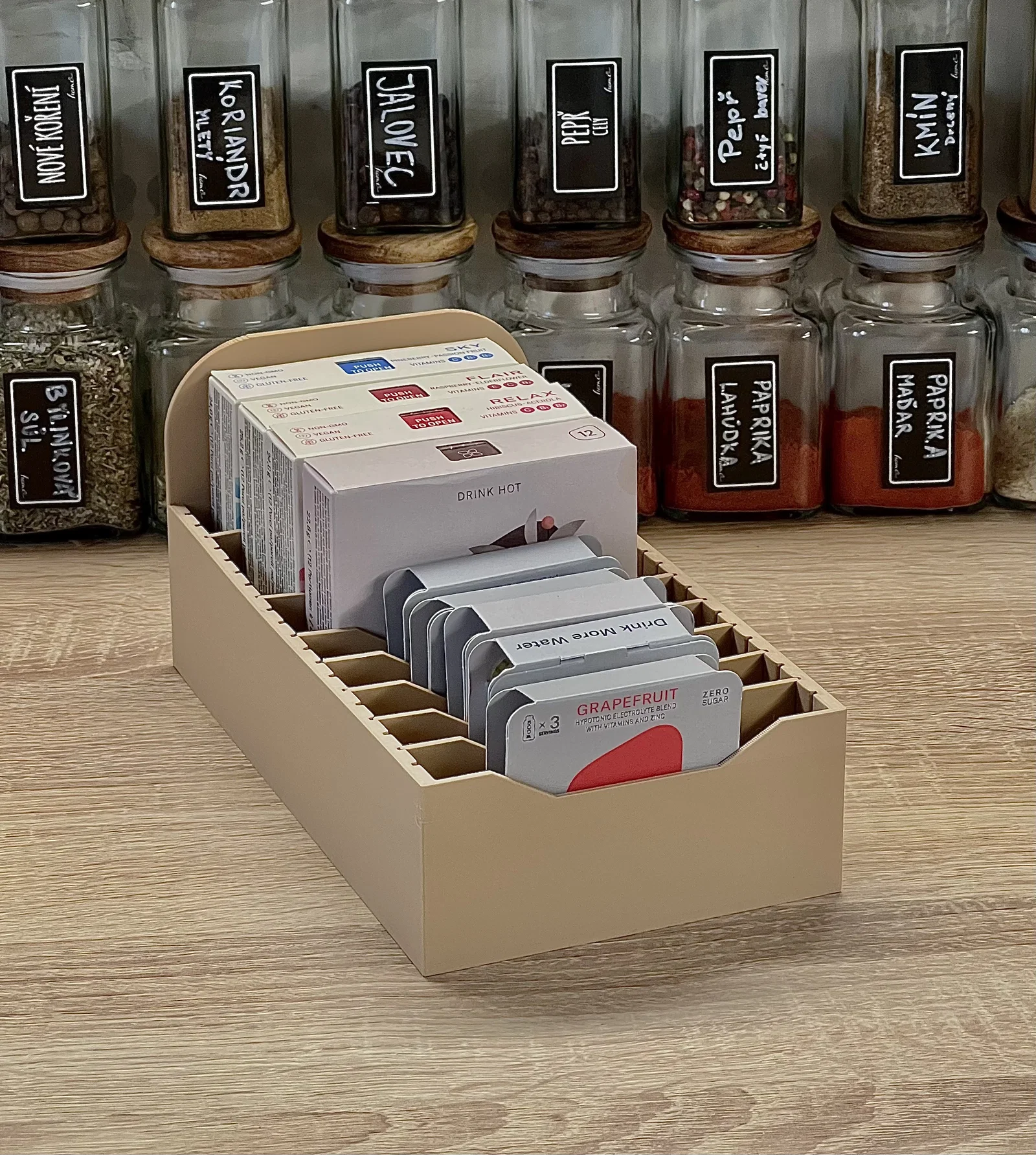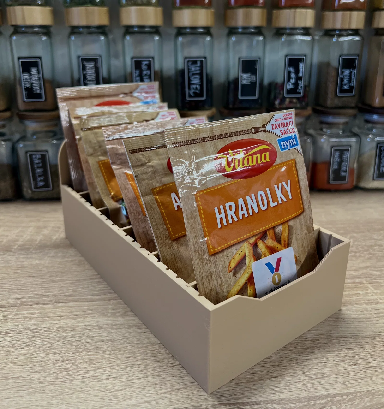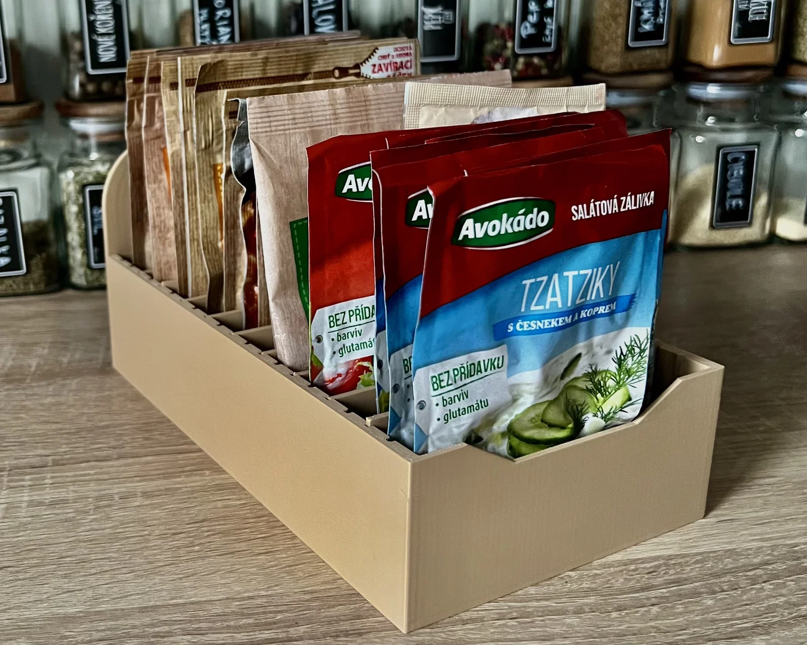 Mẫu kệ/hộp sắp xếp đơn giản cho nhà bếp, tùy biến theo ý bạn. Dùng để cất gia vị, súp ăn liền… hoặc mang qua phòng tắm để đựng makeup, bảng phấn và đồ lặt vặt. Có kèm TIP thông số layer height khi in.