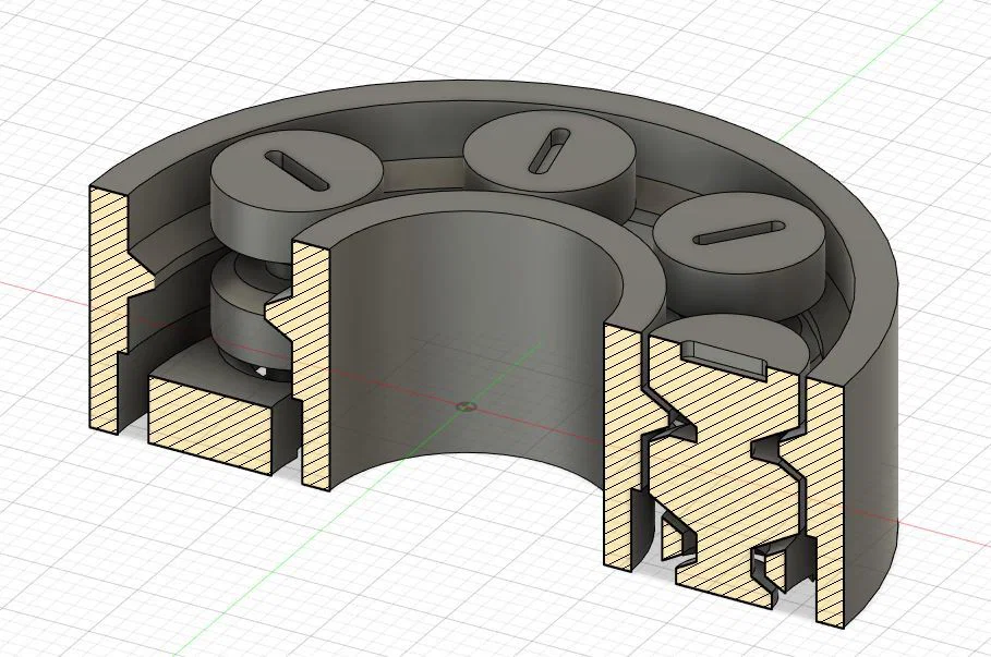 Gần đây mình quay lại phần thiết kế bearing concept và đã làm thêm hai mẫu bearing dạng lắp ráp (assembled) chạy rất mượt, ma sát thấp và fit chặt hơn so với bearing PIP. Nếu bạn đang cần một giải pháp thực tế để in hoàn toàn một 608 bearing thì xem thử các mẫu đó nha: