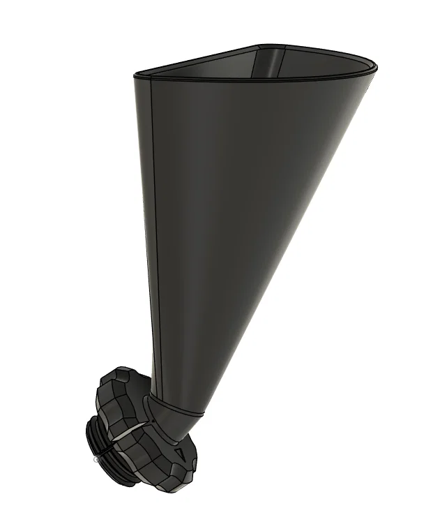 Phễu vặn vào lỗ châm dầu trên chiếc YZF-R6 của mình. Phễu có thể xoay độc lập với đai ốc khóa và sẽ khóa cố định khi siết đai ốc. Print in place.