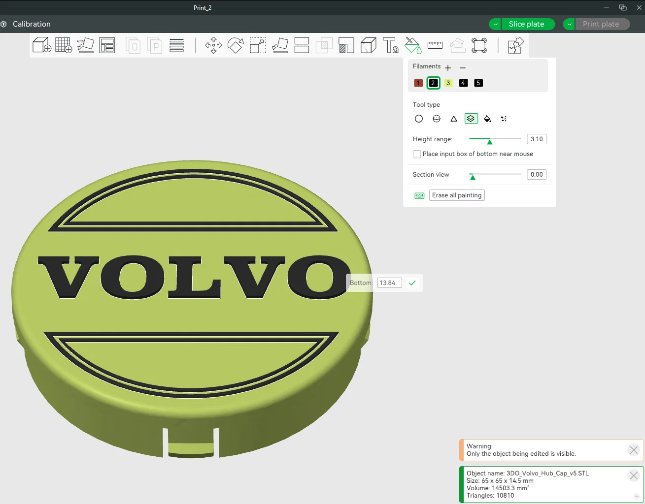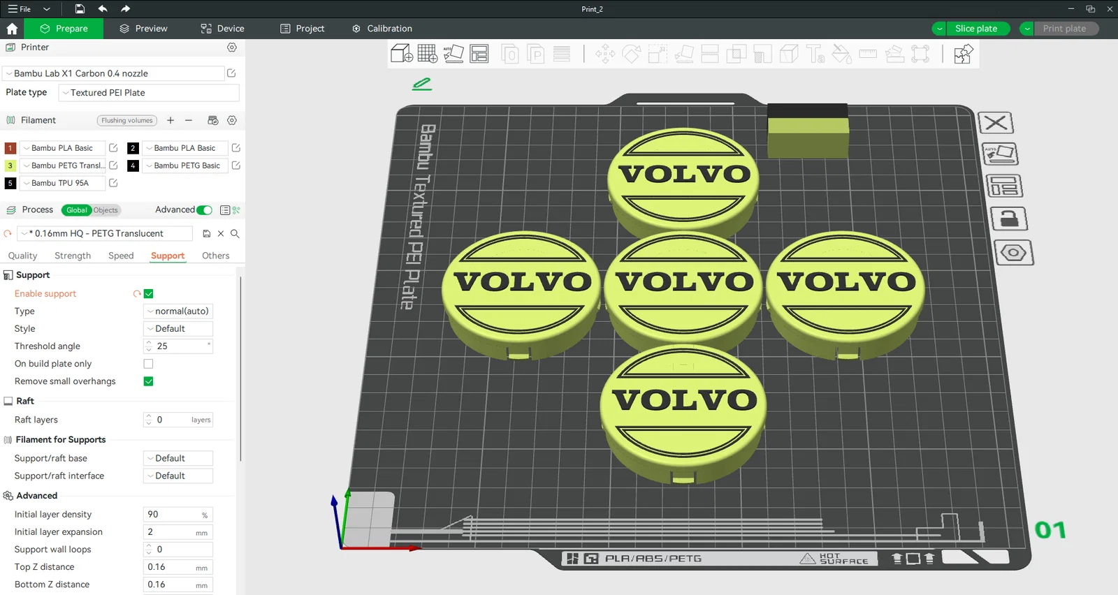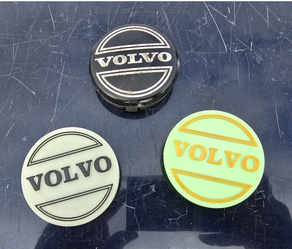 Nắp chụp mâm/center cap cho Volvo V70 1998, có thể hợp thêm 850, S60, S80. Khuyến nghị in PETG (bền hơn PLA), in đúng chiều với support. Phù hợp máy multi-filament như Bambu Carbon X1.