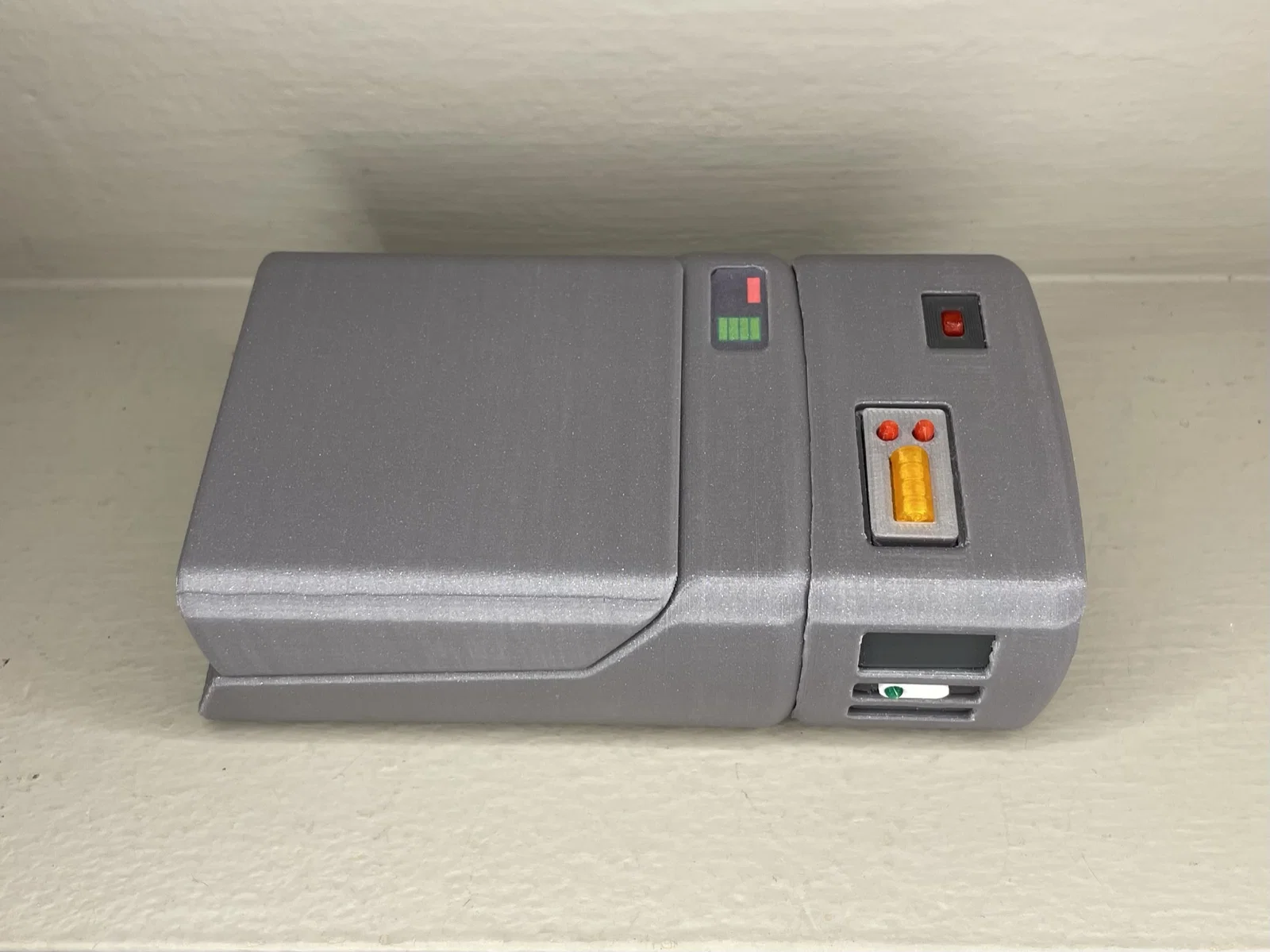 Đây là phiên bản tricorder mình làm dựa theo mẫu xuất hiện ở các mùa sau của Star Trek: The Next Generation. Mẫu này có thể làm dạng science tricorder tiêu chuẩn, và có thể chuyển sang medical tricorder bằng cách dùng nam châm để thay/đổi các phần.
