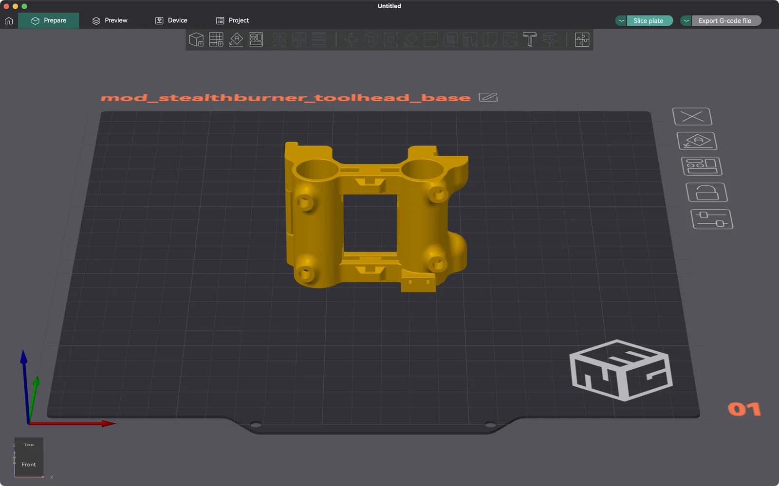Bộ mount được remodel lại để gắn Stealthburner toolhead lên Ender 3 NG (E3NG), tối ưu không gian để vẫn dùng được Z-Endstop/Sexbolt. Có 2 support tích hợp cần tháo sau khi in; in theo hướng gắn switch.