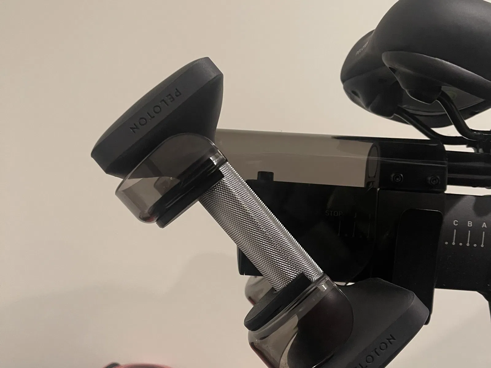 Các quả tạ vuông thực sự không vừa trên xe đạp+ và rất gần với việc rơi ra. Tôi đã làm một vài kẹp sẽ giữ chặt các quả tạ mới hơn.