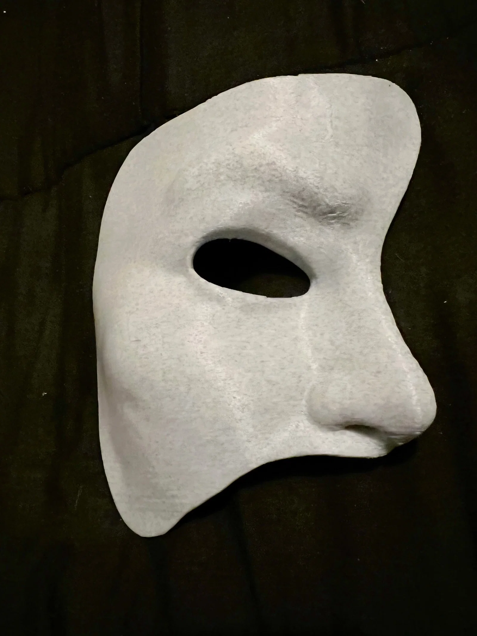 Mặt nạ Phantom of the Opera kiểu thanh lịch, in được với supports (tree) và raft để bám bàn tốt. Có thể hơ nóng (máy sấy) để chỉnh ôm mặt, khoan lỗ luồn dây hoặc dán keo trang điểm. In 0.2mm, 20% infill.