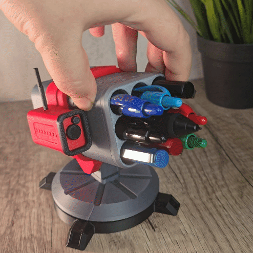 Bạn đang tìm kiếm một món phụ kiện bàn làm việc độc lạ? Hãy khám phá ngay mẫu khay đựng bút mô hình tên lửa phòng không (Surface-to-Air) cực chất. Sản phẩm này cho phép bạn lưu trữ tối đa 6 cây bút, đồng thời sở hữu khả năng xoay và điều chỉnh góc độ linh hoạt như một hệ thống tên lửa thật thụ. Đây không chỉ là vật dụng hỗ trợ sắp xếp bàn làm việc ngăn nắp mà còn là món đồ chơi trang trí đầy cảm hứng cho người yêu thích quân sự, khoa học viễn tưởng hay các game thủ. Với kích thước nhỏ gọn khoảng 4.5 x 4.8 inch, sản phẩm là lựa chọn hoàn hảo để in 3D bằng nhựa PLA, giúp tô điểm không gian làm việc của bạn thêm phần cá tính và ấn tượng. Hãy in ngay hôm nay để biến góc học tập thành một căn cứ chỉ huy thu nhỏ đầy thú vị.
