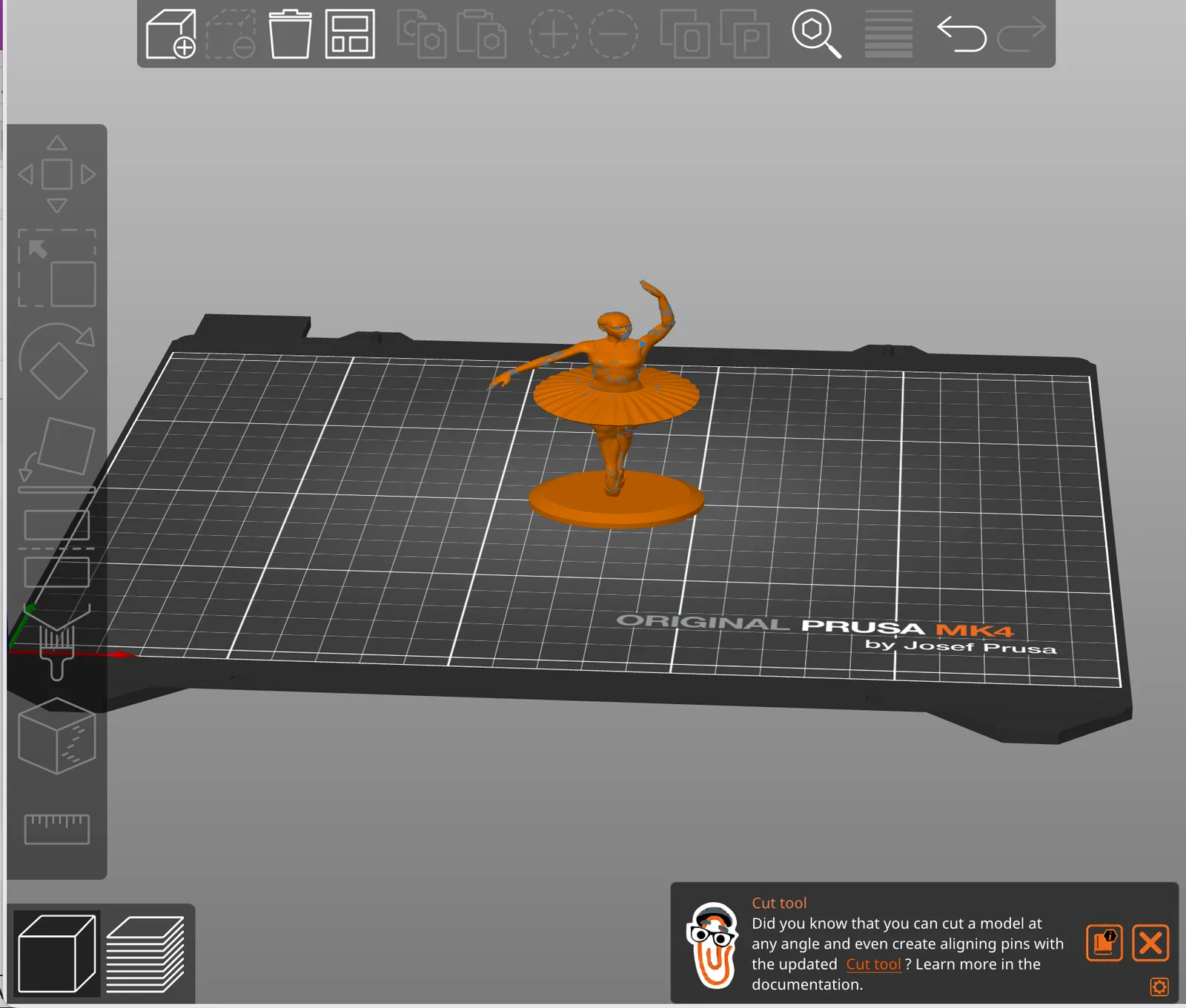 - Cấu trúc hỗ trợ (Supports): Do tư thế tay vươn cao và phần váy xòe, bạn có thể cần thêm một ít support ở dưới cánh tay và gấu váy để tránh lỗi đổ nhựa trong quá trình in.