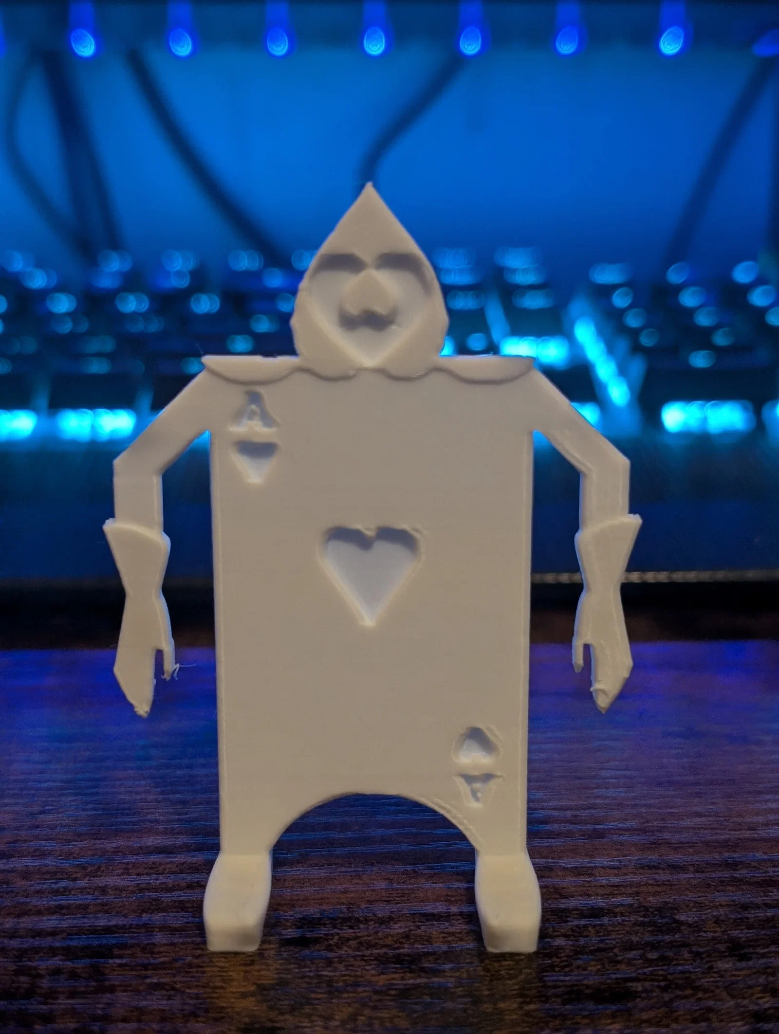 Việc in 3D mô hình này khá đơn giản và phù hợp với cả những người mới bắt đầu tiếp cận với máy in 3D. Nhờ hình dáng dẹt và cấu trúc chắc chắn, mô hình đứng rất vững chãi trên bề mặt phẳng mà không cần thêm đế rời. Bạn hoàn toàn có thể sáng tạo bằng cách kết hợp in nhiều màu hoặc sử dụng sơn thủ công sau khi in để làm nổi bật hình trái tim, họa tiết quân bài và đôi găng tay, tạo nên một tác phẩm hoàn thiện và có hồn hơn.