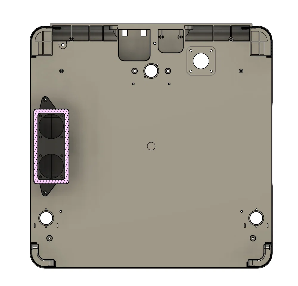 Chiếm vị trí quạt phụ (auxiliary fan). Phía sau BentoBox còn chừa khoảng hở 5mm. Đây chỉ là ống dẫn gió (fan duct) để gắn BentoBox. Phần còn lại thì dùng các file BentoBox gốc. Không có gì thay đổi ngoài cái fan duct này.