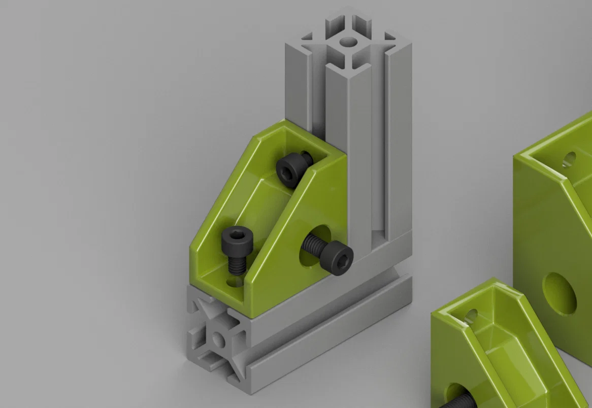 Supported Corner Bracket 3 Axis có gân đỡ, dùng làm corner bracket 3 trục cho nhôm định hình V-Slot/T-Slot chuẩn 2020, 3030 và 4040. File tải miễn phí, phù hợp lắp ghép khung máy.