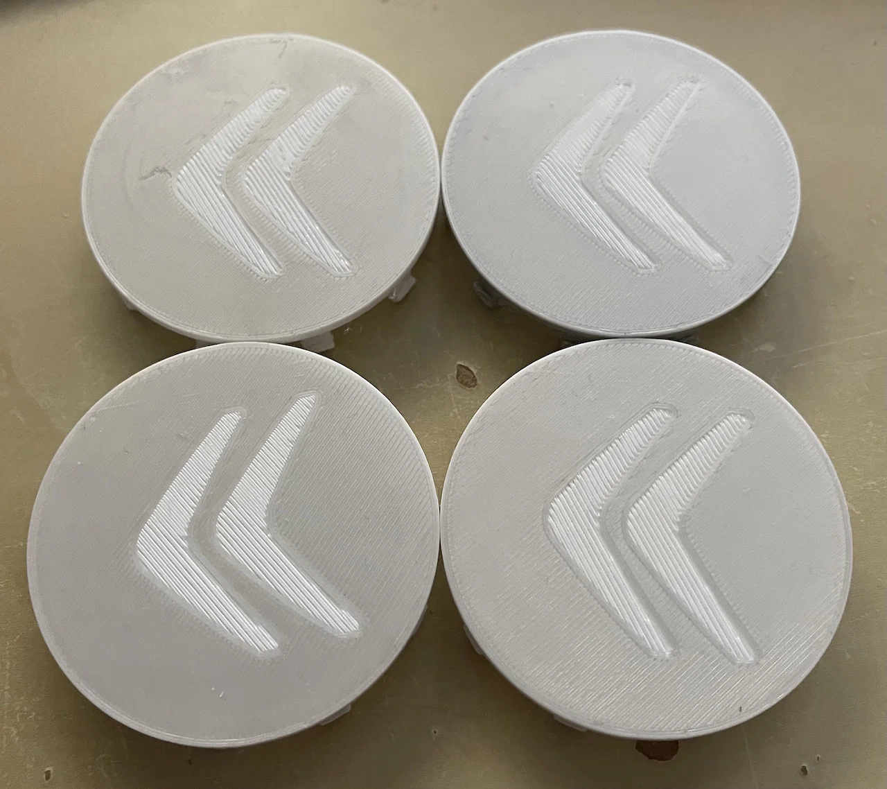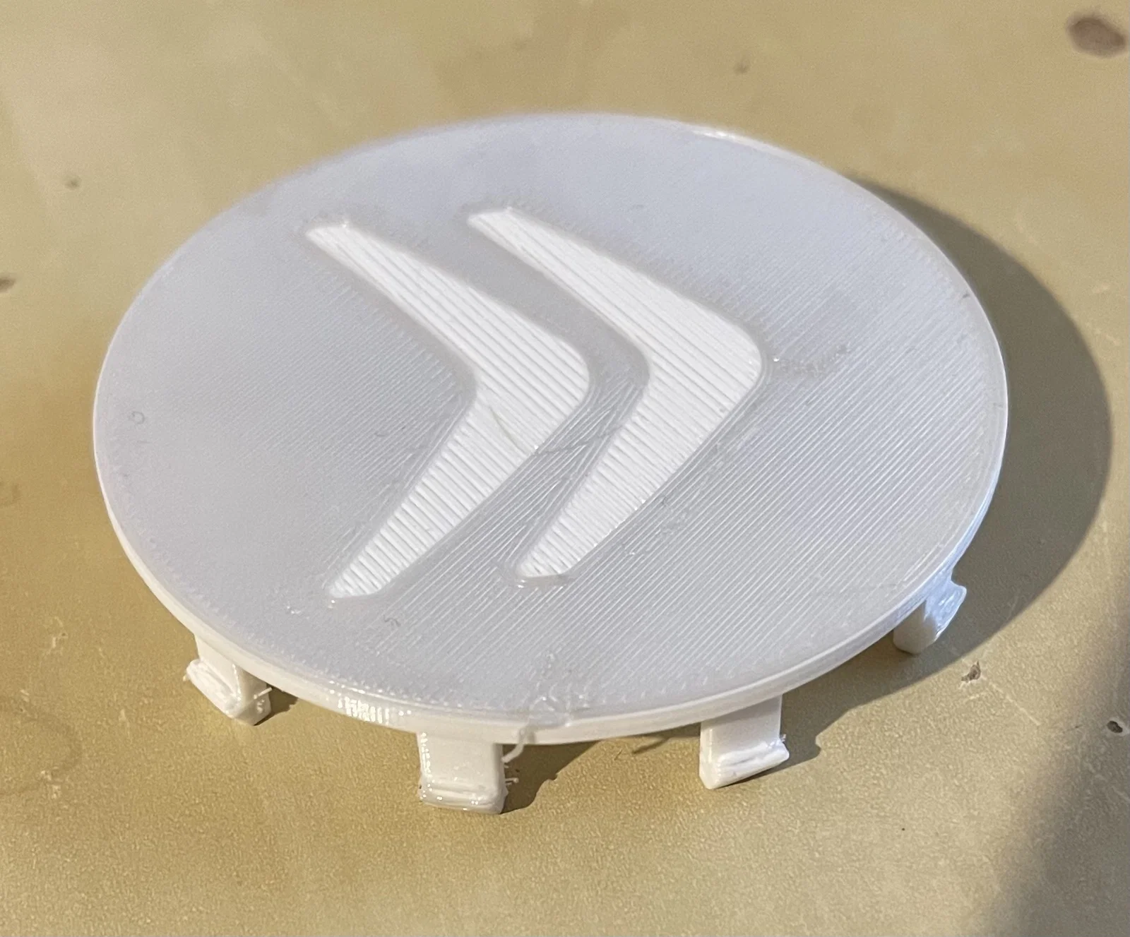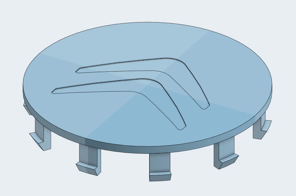 Nắp chụp tâm mâm 60mm (kích thước thực 59.8mm để có độ hở). Có bản cho Citroen và bản trơn universal không logo để bạn tự thêm. Khuyến nghị in PETG để ngàm bấm vào không bị gãy, kèm bản dày hơn bền hơn.