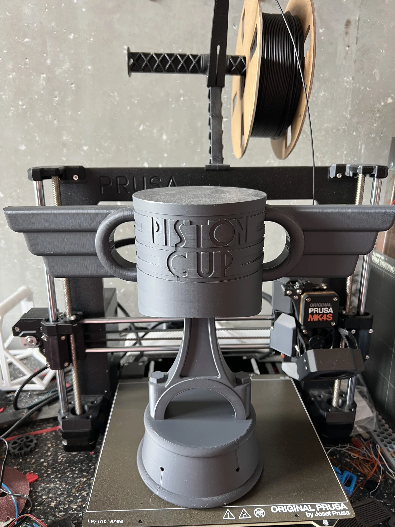 Mẫu Piston Cup lấy cảm hứng từ chiếc cúp trong phim Cars, tối ưu để in 3D và hạn chế dùng supports. Về lý thuyết có thể in không cần supports, nhưng có thể thêm cho phần cánh và rod cho an toàn.