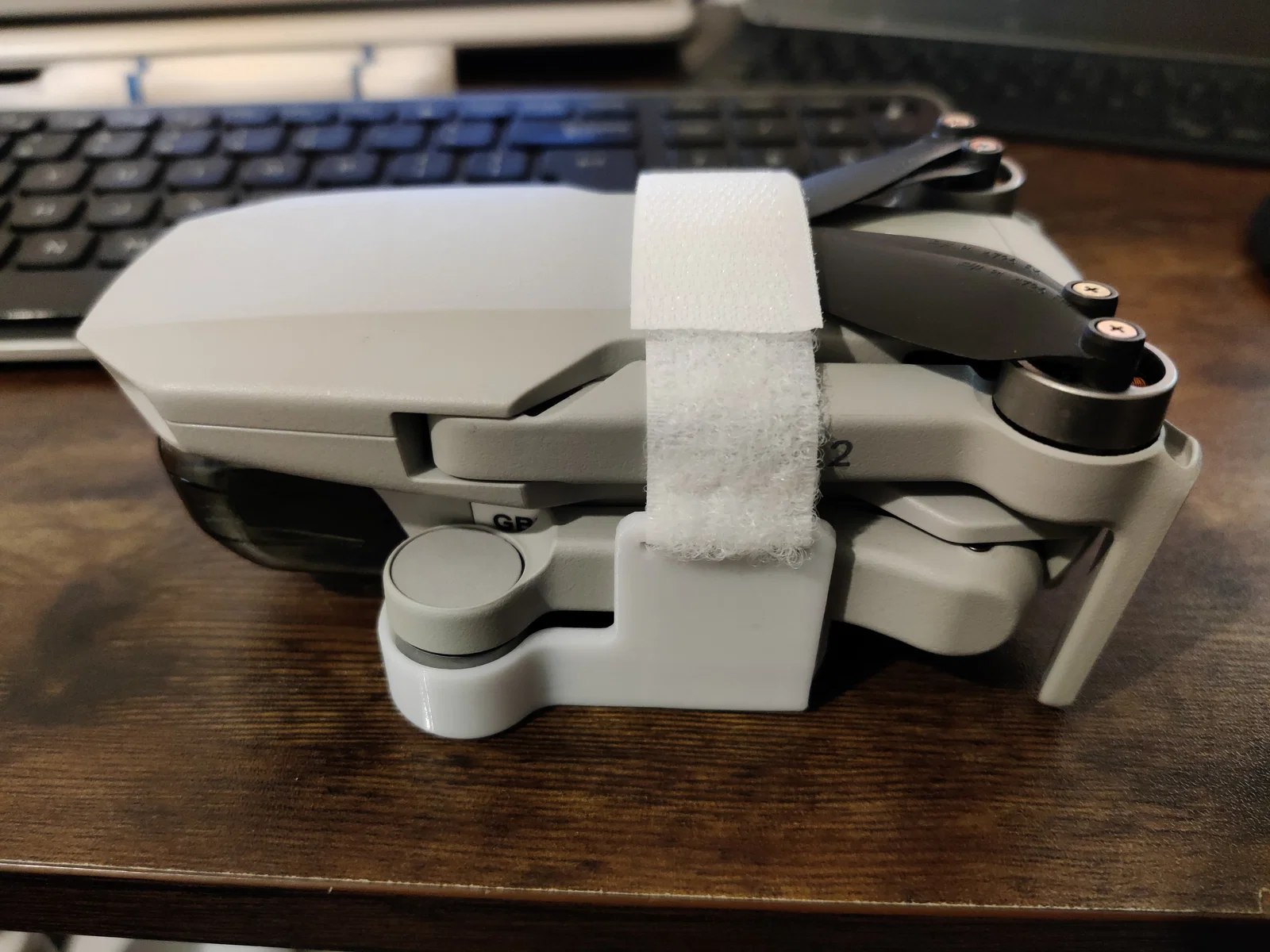 Giá giữ cánh quạt cho DJI Mini 2, có thể phù hợp cả Mini/Mini SE/Mini 4k (chưa test). In được với PLA/PETG hoặc TPU. Khuyến nghị 4 perimeters (nozzle 0.4mm) để bỏ infill. Bản V2 có khoét để thao tác gimbal cover.