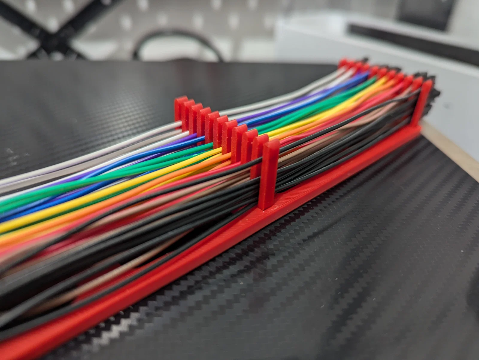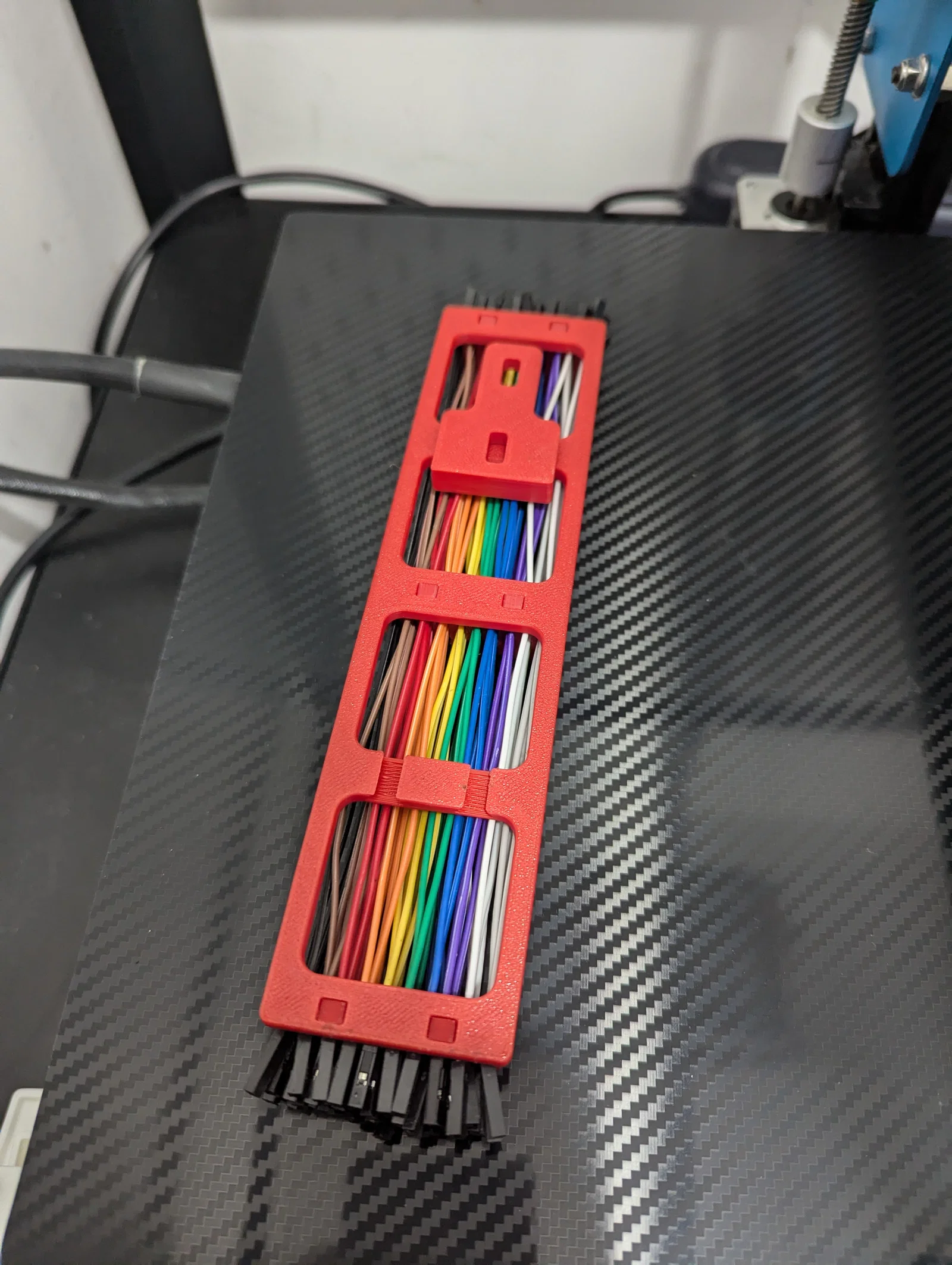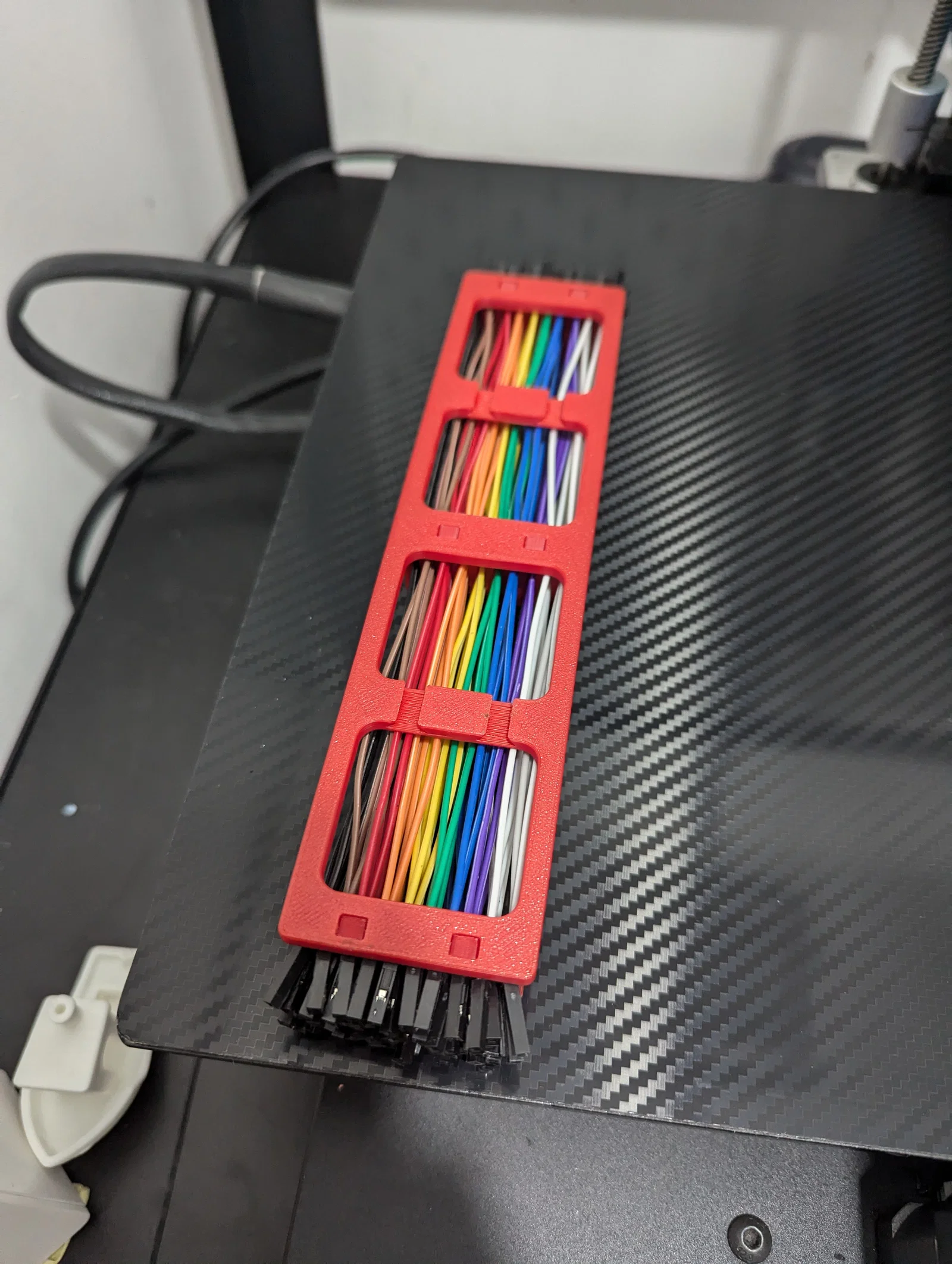 Khay organizer để cất gọn nhiều dây Dupont/jumper cho ngăn kéo gọn gàng. Có 2 bản: in all-in-one (comb/brush hơi yếu) hoặc bản lắp ráp chắc hơn; hỗ trợ gắn Skadis Universal Hook.