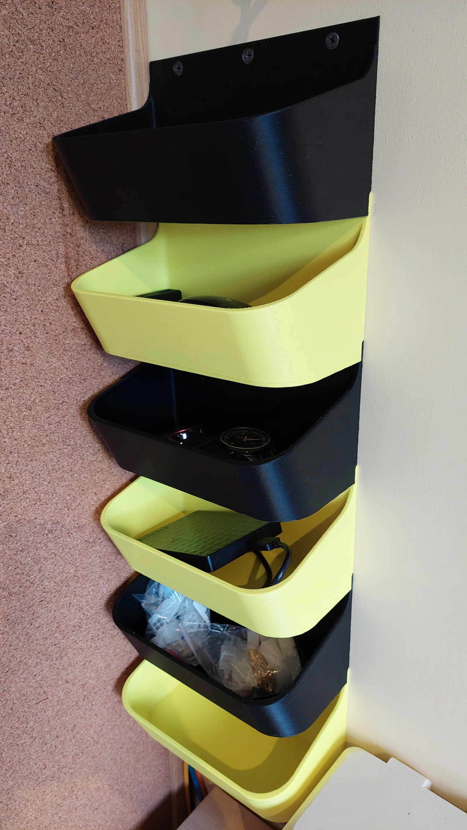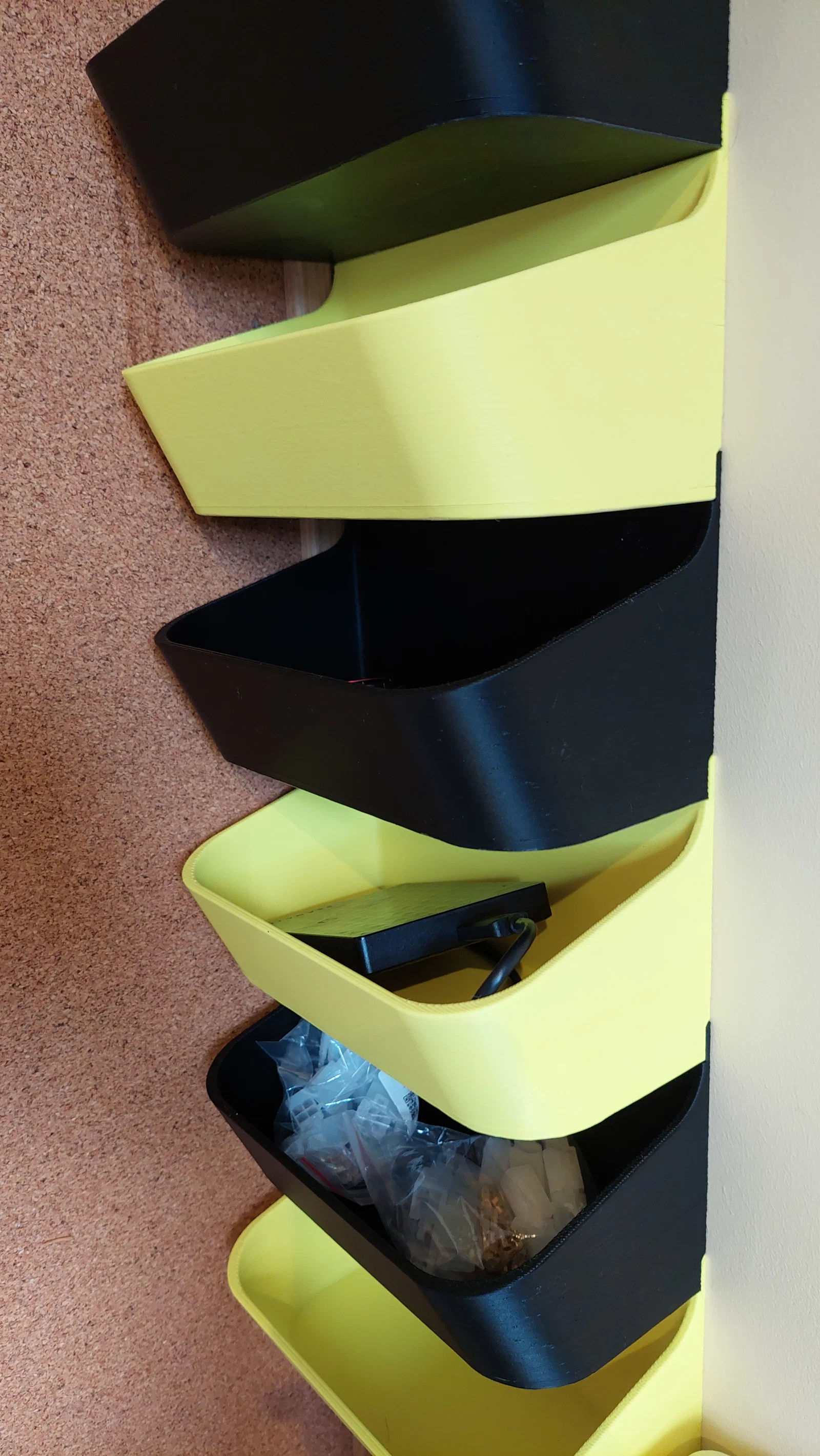 Bộ hộp/khay gắn tường Storage Wall dạng stackable, thiết kế phần ngàm/bắt vít che nhau khi xếp chồng nên vẫn dễ lấy đồ. Dùng để chứa đồ nhỏ lặt vặt, in 3D không cần support.