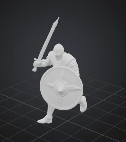 Nếu bạn là người đam mê các trò chơi nhập vai (RPG) hoặc đơn giản là thích sưu tầm những mô hình nhân vật lịch sử, thì mô hình chiến binh thời trung cổ này chắc chắn sẽ làm bạn hài lòng. Đây là một file STL được tạo ra để tái hiện hình ảnh một chiến binh đang trong tư thế chạy, tay phải cầm kiếm vung cao còn tay trái thủ sẵn tấm khiên tròn lớn. Các chi tiết về giáp trụ và vũ khí được thể hiện khá rõ nét, tạo cảm giác chân thực và sống động như bước ra từ những bộ phim cổ trang hoành tráng.