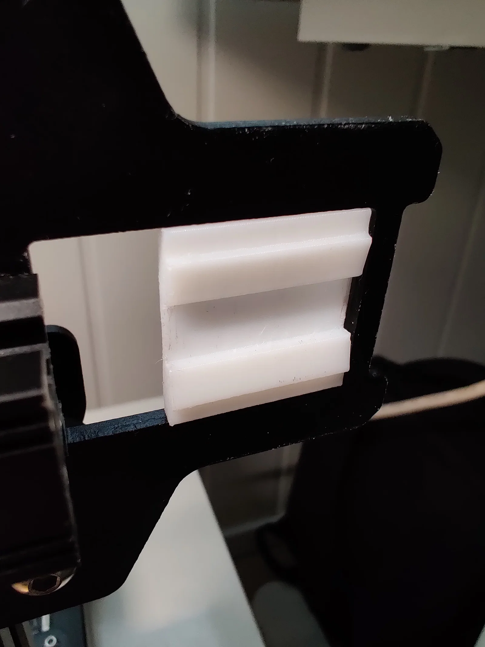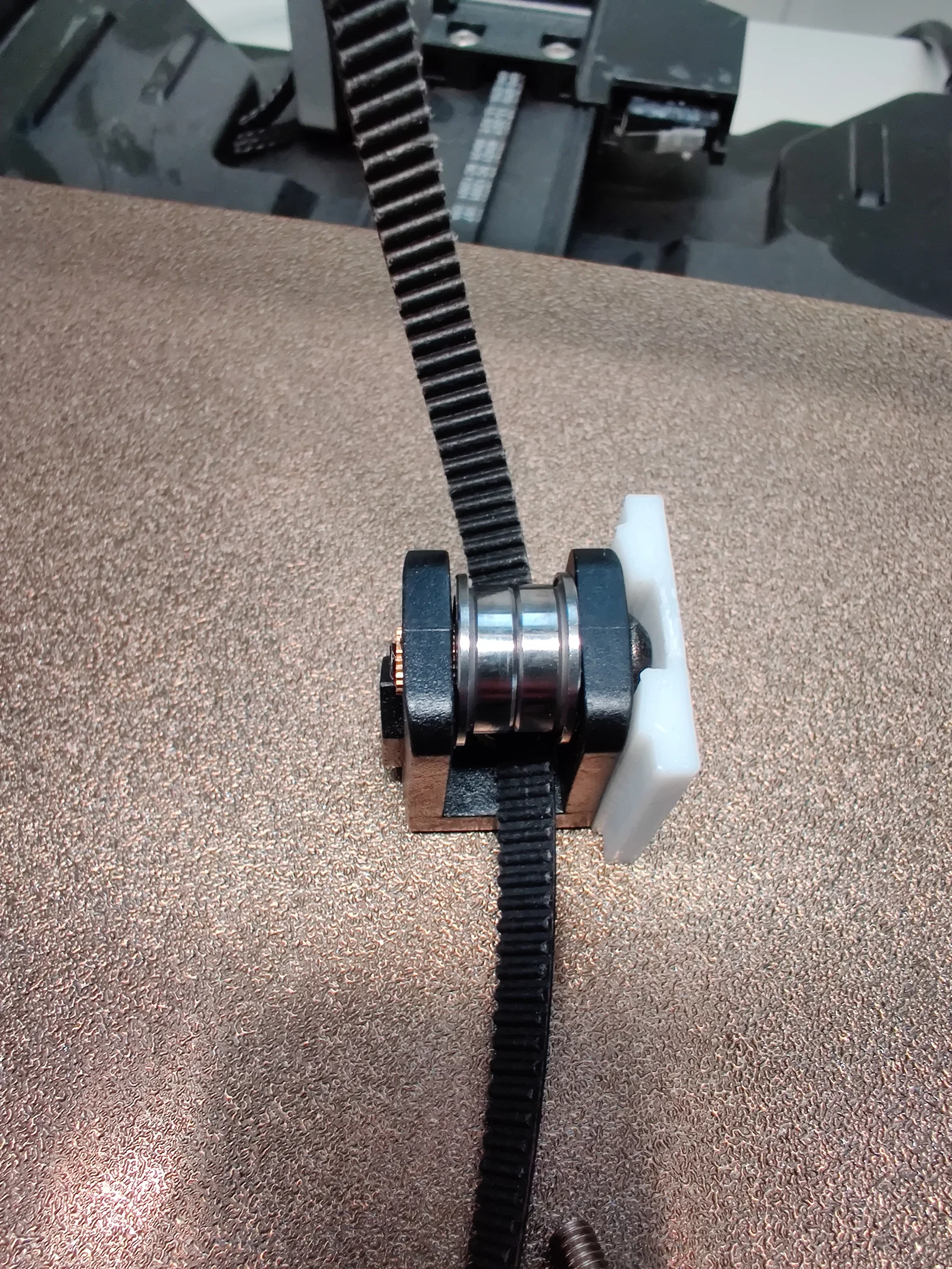 Phần giữ bearings hơi bị lệch một chút, nên để canh thẳng đúng với dầm trục X thì bạn có thể chèn thêm một miếng đệm (spacer) ở giữa phần in và nó, ví dụ như một mảnh giấy nhỏ.