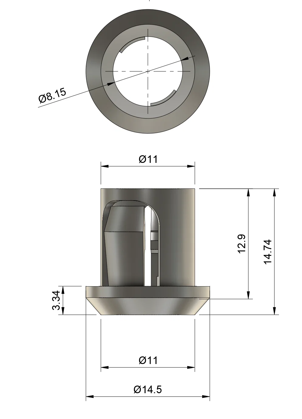 Giữ LED không bị bị đẩy lùi vào trong ngàm/mount nhờ có các lẫy nhỏ. Lắp vừa lỗ 11.5mm với độ dày vật liệu tối thiểu 1.5mm.