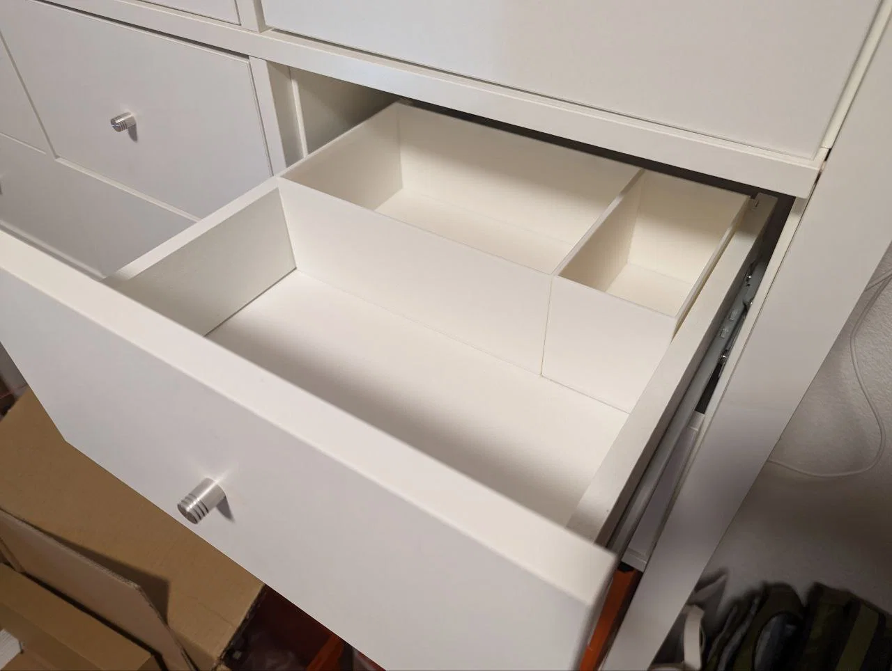 Những khay organizer cho ngăn kéo này được thiết kế để vừa khít hoàn hảo với ngăn kéo của kệ Kallax, giúp tăng thêm không gian lưu trữ và giữ mọi thứ gọn gàng ngăn nắp. Có nhiều kích thước khác nhau để hợp với cách sắp xếp của bạn, và có thể lắp ráp nhanh gọn, dễ làm.