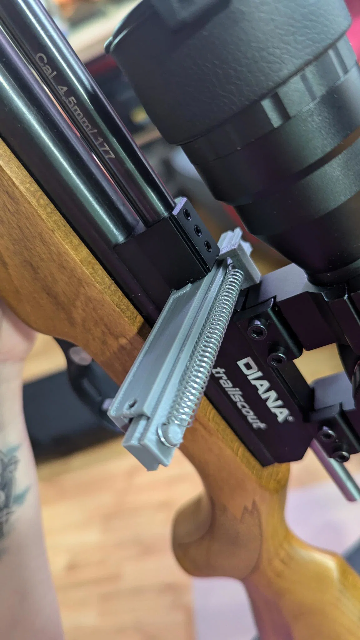 Magazine dạng spring-loaded cho súng/pistol pellet Diana (Trailscout, Stormrider, Bandit, Chaser). Chứa 7 viên 4.5mm, dùng lò xo 6x18mm và có rãnh gắn nam châm 10x2mm; 5.5mm chưa test.