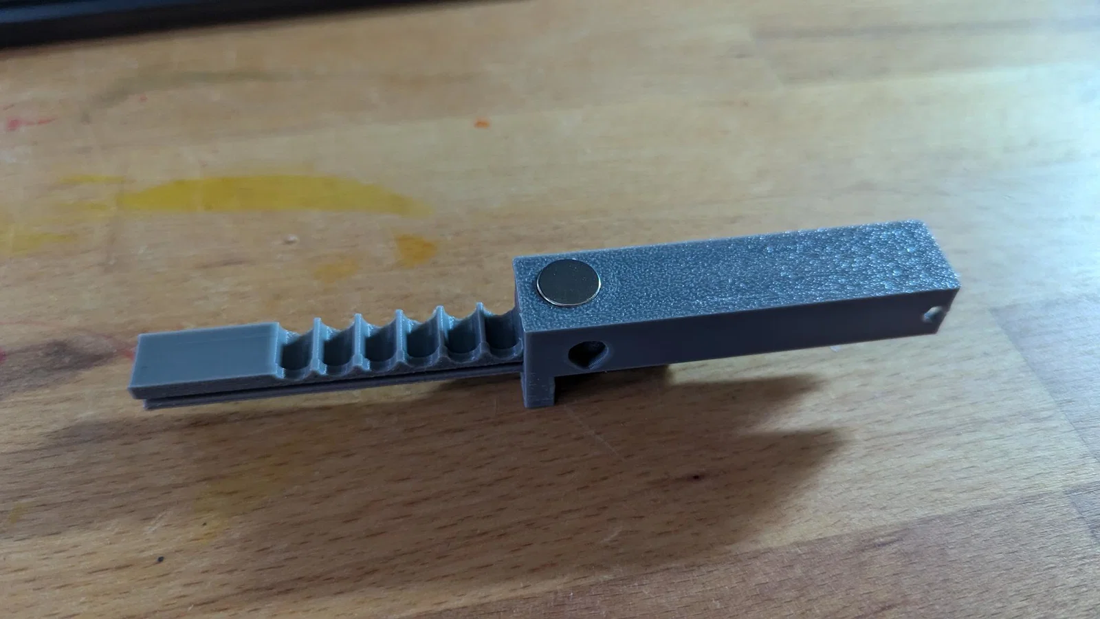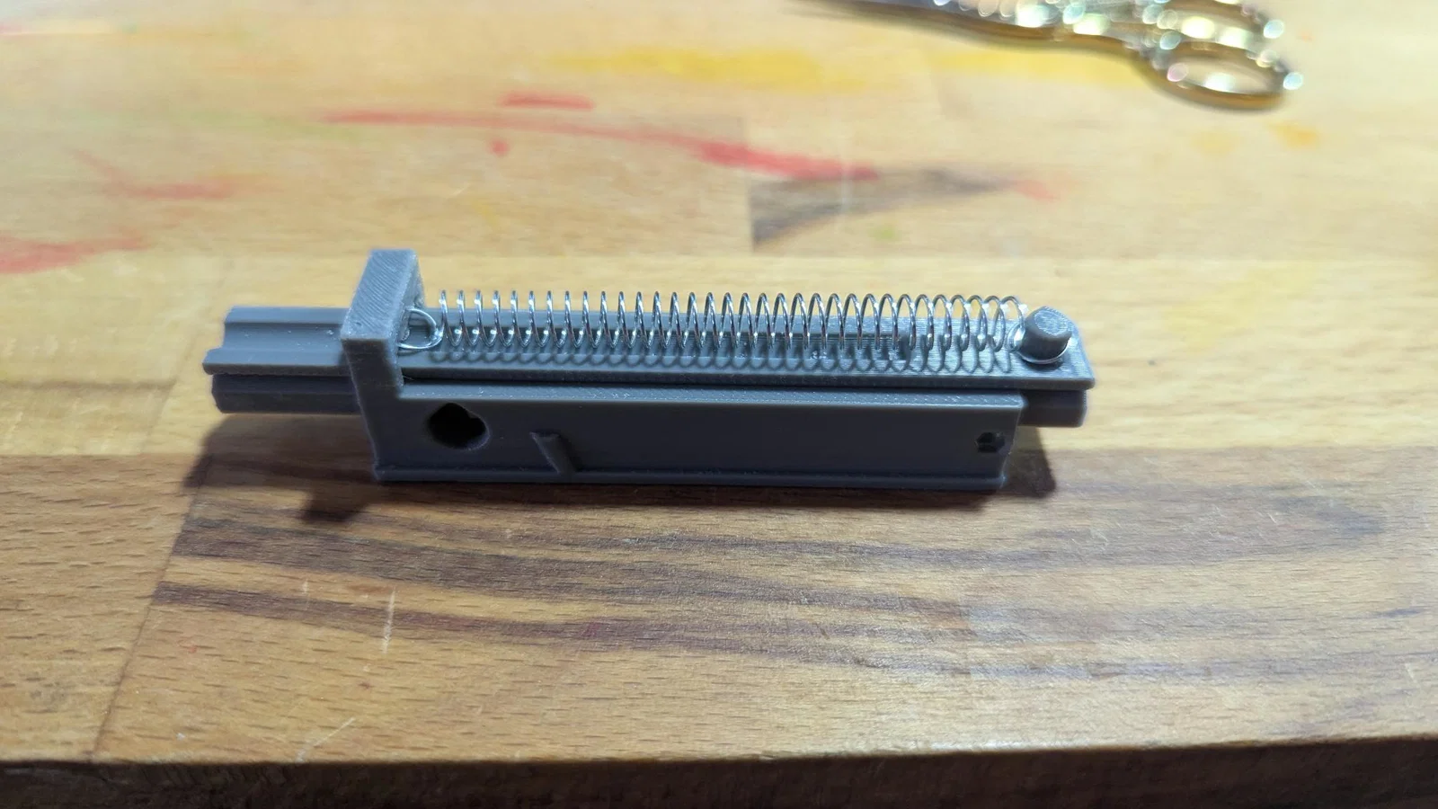 Magazine chứa được 7 viên 4.5mm và dùng lò xo 6x18mm để tạo lực căng. Ở mặt dưới có một rãnh để gắn nam châm 10x2mm.